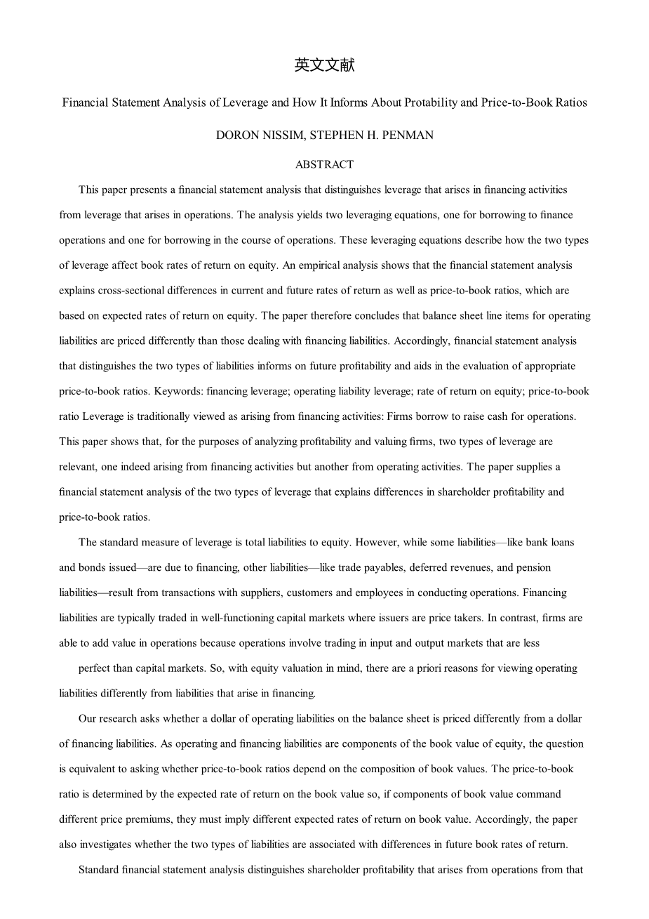 珠海格力电器股份有限公司财务报告分析外文翻译资料 2022-05-01 22:00:55 英语原文共 11 页,剩余内容已隐藏,支付完成后下载完整资料 英语译文共 7 页,剩余内容已隐藏,支付完成后下载完整资料资料编号:[466141],资料为PDF文档或Word文档,PDF文档可免费转换为Word 原文和译文剩余内容已隐藏,您需要先支付 30元 才能查看原文和译文全部内容!立即支付 发小红书推广免费获取该资料资格。点击链接进入获取推广文案即可: Ai一键组稿 | 降AI率 | 降重复率 | 论文一键排版 PREVIOUS NEXT 您可能感兴趣的文章 精益管理-精益管理方法在酒店业中的应用外文翻译资料 主题公园外文翻译资料 财务报表的可持续发展和重新概念化外文翻译资料 关于被选择公司的财务分析外文翻译资料 葡萄酒和文化遗产:阿尔托杜罗河葡萄酒产区的经验外文翻译资料 创意经济、文化产业与地方发展外文翻译资料 我国商业银行个人理财业务的战略研究与发展现状外文翻译资料 大学生的信用卡消费外文翻译资料 成功的学前儿童语音意识教学:课堂经验外文翻译资料 剑桥中国文学史外文翻译资料
