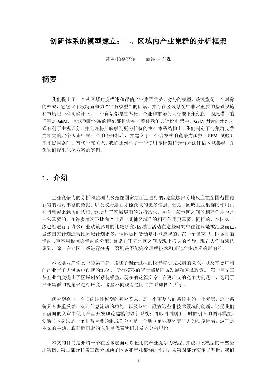 基于GEM模型的苏州白马涧生命健康特色小镇竞争力评价研究外文翻译资料 2022-05-03 22:11:49 英语原文共 17 页,剩余内容已隐藏,支付完成后下载完整资料 英语译文共 12 页,剩余内容已隐藏,支付完成后下载完整资料资料编号:[463706],资料为PDF文档或Word文档,PDF文档可免费转换为Word 原文和译文剩余内容已隐藏,您需要先支付 30元 才能查看原文和译文全部内容!立即支付 发小红书推广免费获取该资料资格。点击链接进入获取推广文案即可: Ai一键组稿 | 降AI率 | 降重复率 | 论文一键排版 PREVIOUS NEXT 您可能感兴趣的文章 精益管理-精益管理方法在酒店业中的应用外文翻译资料 主题公园外文翻译资料 财务报表的可持续发展和重新概念化外文翻译资料 关于被选择公司的财务分析外文翻译资料 葡萄酒和文化遗产:阿尔托杜罗河葡萄酒产区的经验外文翻译资料 创意经济、文化产业与地方发展外文翻译资料 我国商业银行个人理财业务的战略研究与发展现状外文翻译资料 大学生的信用卡消费外文翻译资料 成功的学前儿童语音意识教学:课堂经验外文翻译资料 剑桥中国文学史外文翻译资料