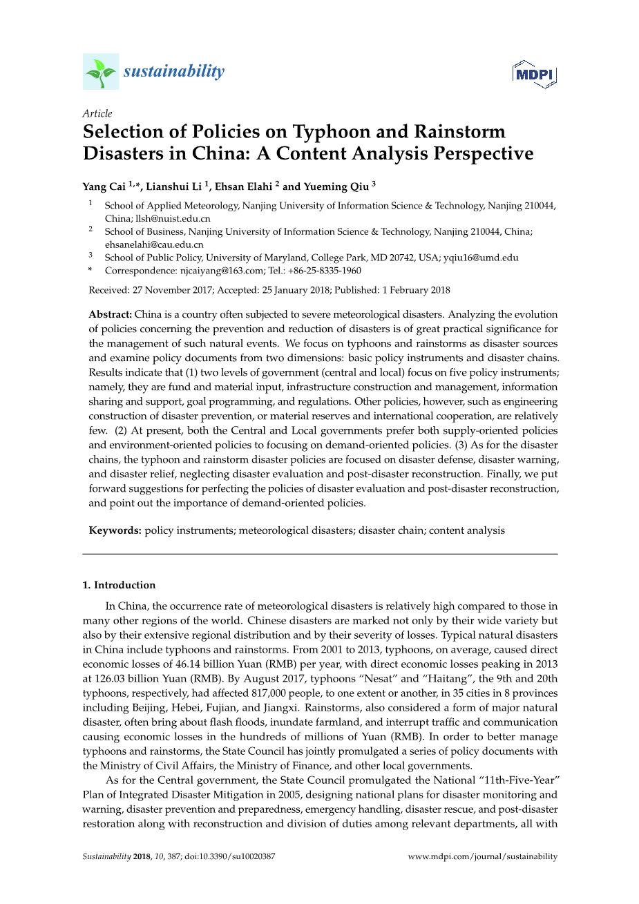 中国台风暴雨灾害政策的选择:内容分析透视外文翻译资料
