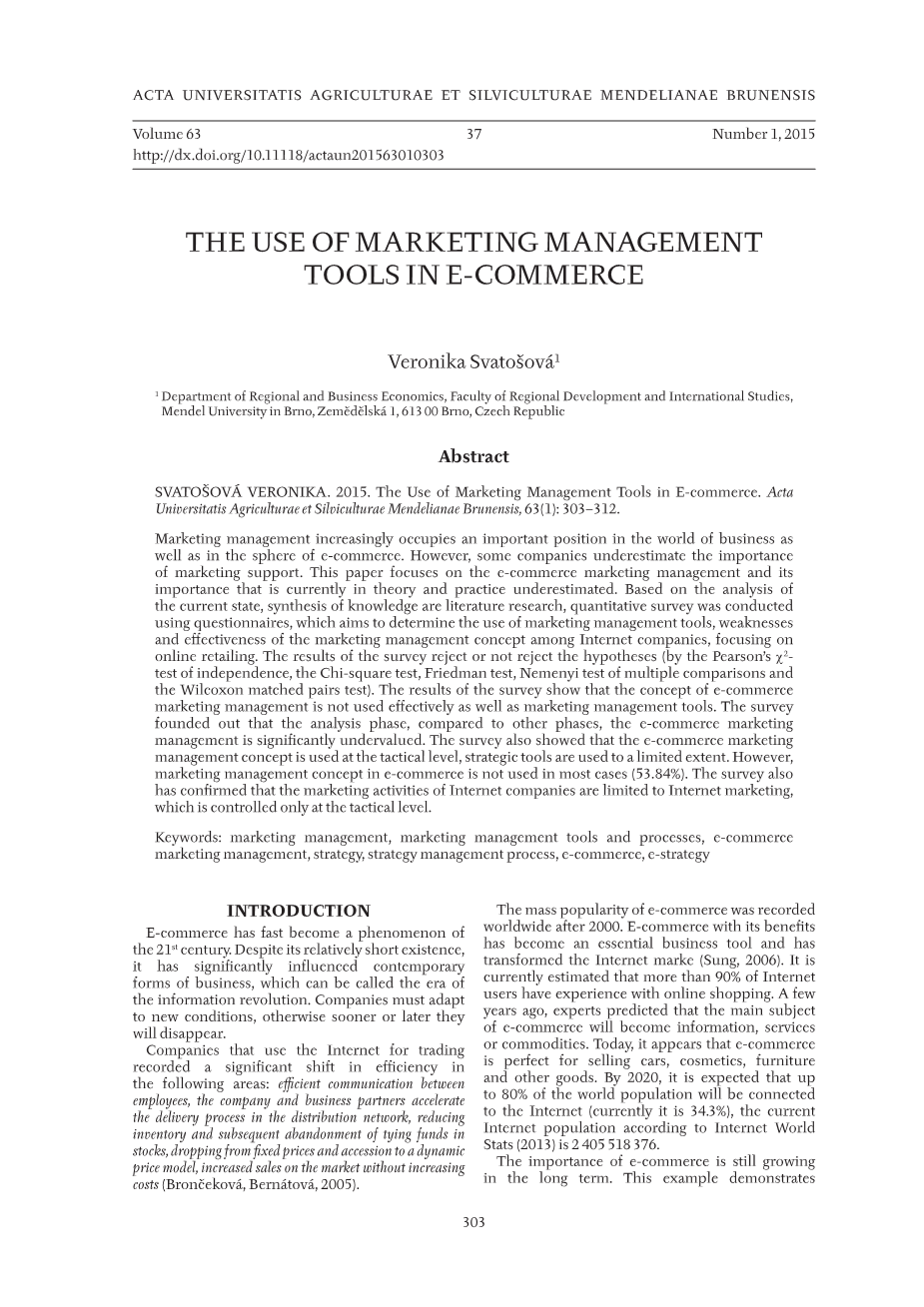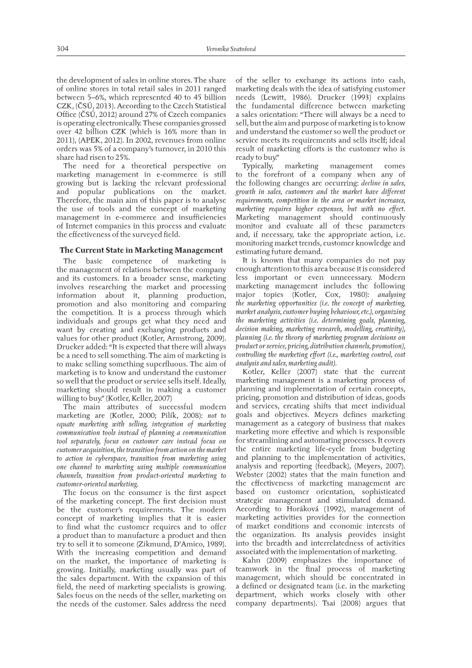 营销管理的基本原则对所有商业部门都具有普遍有效性。可以说,营销管理是专门针对特定领域(特别是电子商务)的,并适应于特定行业和市场的现状。电子商务的营销管理可以称为电子营销管理或电子商务营销管理。很明显,电子商务的营销管理应该与传统的营销管理分析、规划、实施和控制)相一致。特异性网络营销管理主要包括各种营销形式和工具的使用,即对不同的在线消费者的在线购物行为的分析,用一种不同的方法和其他战略工具创建营销策略,不同的管理由于互联网市场特异性,与洛克的销售活动和网络空间与营销活动(特别是与网络营销工具)有明显的差异,同时也是用不同的方法来创建的电子营销组合。有趣的是,尽管电子商务领域是研究和开发(研发)活动的一个吸引人的话题,但研发在电子商务领域的营销管理的重点却完全是不可忽视的。电子商务提供了决策的多样性,这导致了战略方法的形成(从网页设计,理解在线客户行为,到品牌建设和电子市场的战略地位)。因此,它的相关性成为电子商务的策略,也被称为电子战略或电子商务策略。查非将电子策略定义为使用电子渠道、工具和方法实现这些目标的具体目标和方法。它的创造和应用与电子市场密切相关。电商策略结合了传统和现代工具,以在线和离线策略的形式实现了主要和长期的业务目标。电商策略也可以被视为一种营销策略(例如,获取新客户和他们的忠诚度、品牌建设和形象等)。电子商务战略的实际需求也可以被看作是主要的必要战略步骤之一。可以指出,电子营销管理成功的重点在于有效的创新和电子策略的实施。因此,市场营销活动的有效性是必要的,这类工具可以帮助实现预期的目标。营销管理可以被称为一个过程,它受到所选管理和营销工具的显著影响。本文着重于定义营销管理工具。在文献综述的基础上,。我在营销管理过程的各个阶段(分析、规划、实施和控制)中选择了一些工具,评估它们的一般重要性,并为电子商务领域指定。