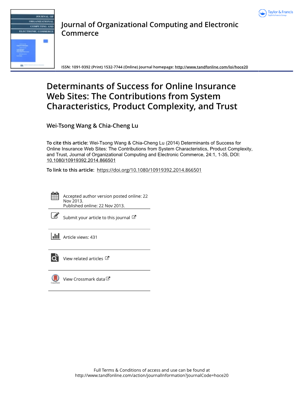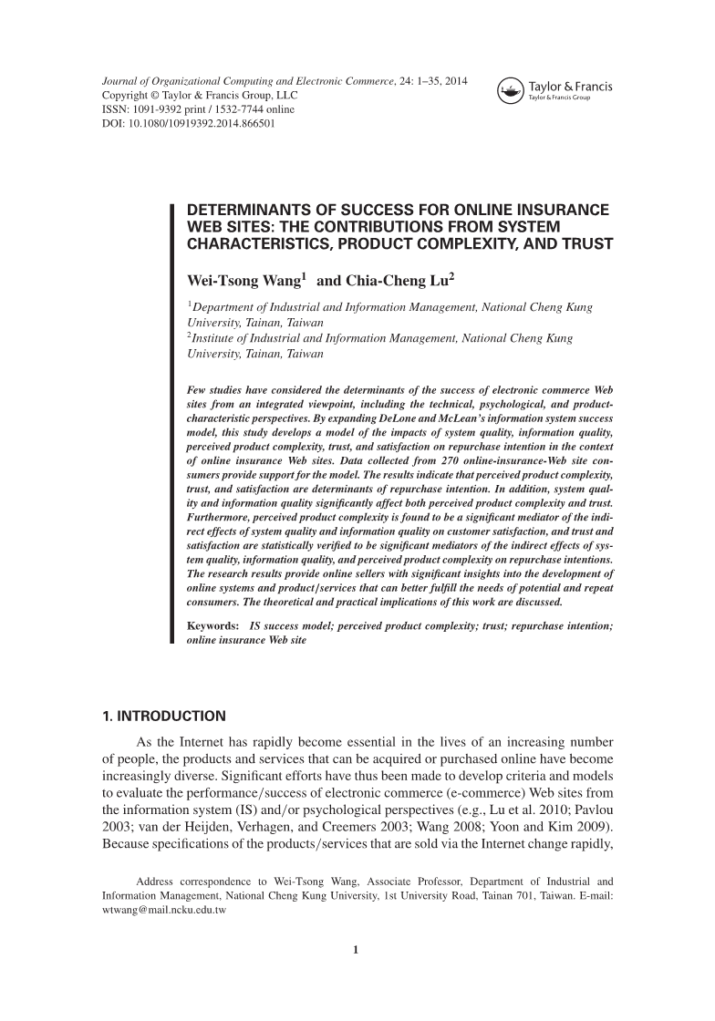 保险销售网站成功的决定因素:系统特征,产品复杂性与信任的贡献度
