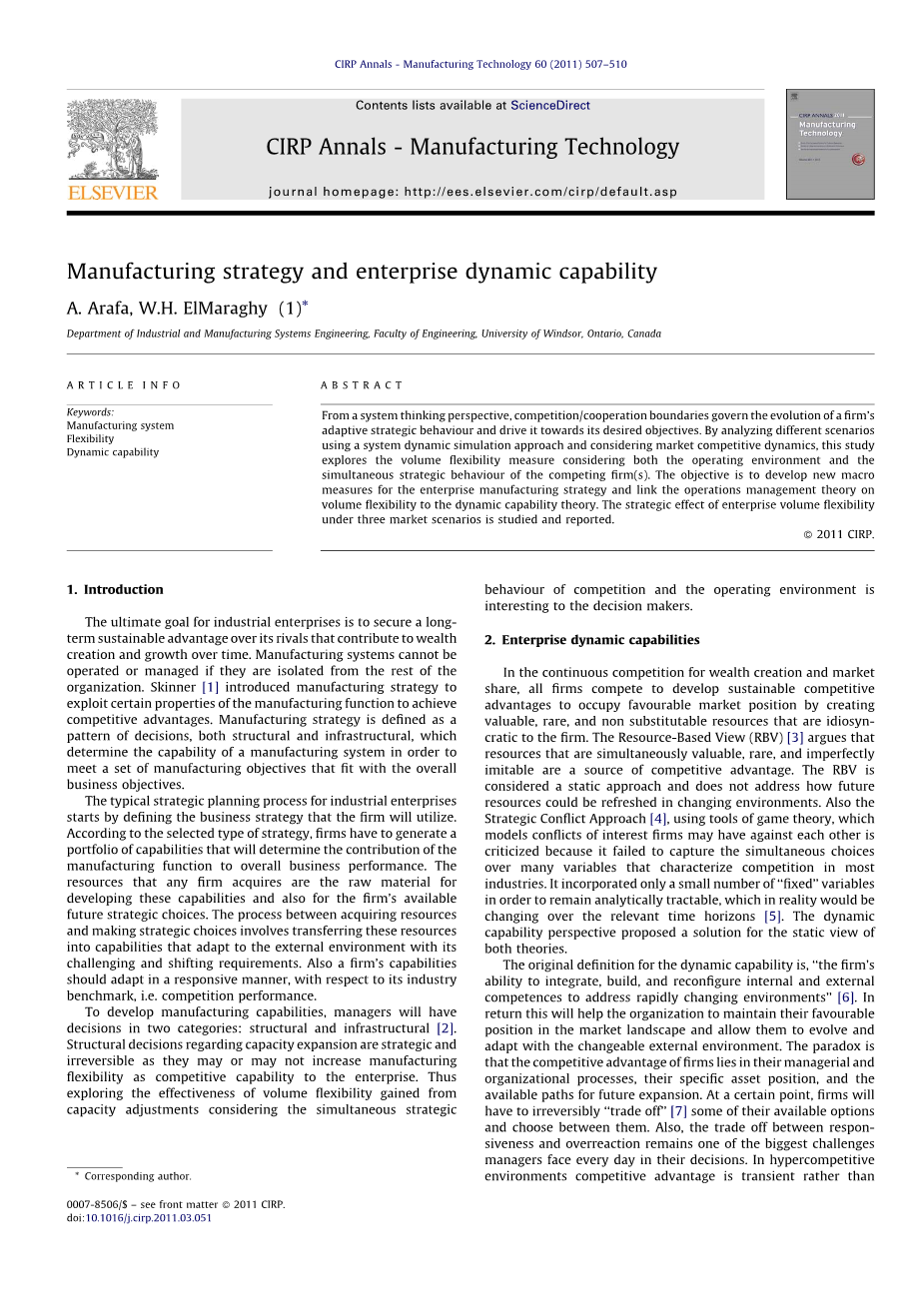 [5] Gary M, et al, (2008) System Dynamics and Strategy. System Dynamics Review 24(4):407–429. [6] Teece D, Pisano G, Shuen A (1997) Dynamic Capabilities and Strategic Management. Strategic Management Journal 18(7):509–533.