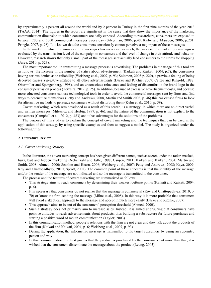 - 这是必要的,消费者不知道这个消息是商业(罗伊和Chattopadhyay在2010年,第70页),或知道是公司发送的消息(米尔恩等,2008)。通过这种方式,消费者更可能会避免怀疑态度的消息,并更容易接受它(达克和Ritchie,2007)。