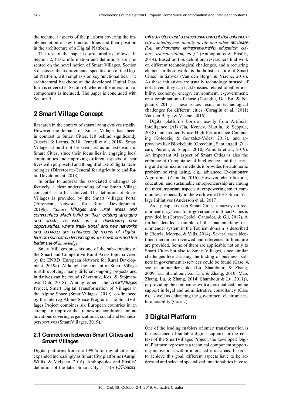 本文的其余部分结构如下。第二部分介绍了智能村庄这一新概念的基本信息和定义。第3节讨论了数字平台的需求规范,重点讨论了关键功能。第4节将介绍已开发的数字平台的架构主干,其中包括组件的交互。第五部分是本文的结束语。