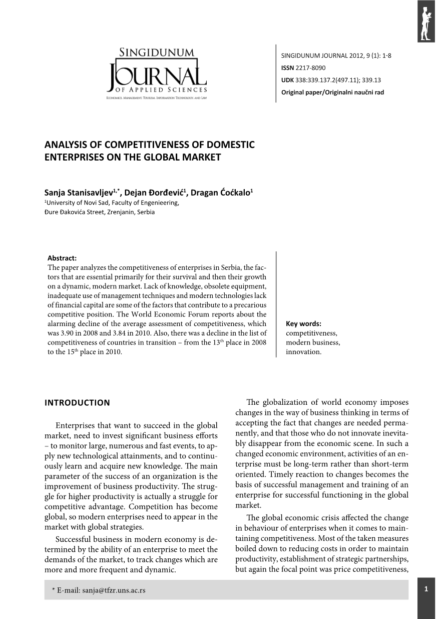 当我们谈到竞争力,塞尔维亚是一个尴尬的境地。阻碍本土企业融入全球经济趋势的情况,主要是由于我国的国际孤立,长期以来不适应全球市场。在这样的情况下,在公司的成长和发展战略,国外市场不足的治疗发生。