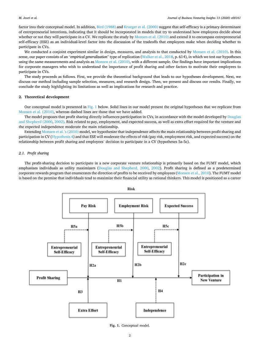 我们进行了一项与Monsen等人进行的设计,测量和分析相似的联合实验(2010)。在这个意义上讲,我们的论文包含Walker等人(2018)的“经验概括”类型的副本,并且在研究中我们使用与Monsen等人相同的测量和分析方法来检验我们的假设,但在样本方面是不同。对于希望了解利润分配和其他因素以便于激励公司的员工参加企业创业的经理而言,我们的研究发现是非常重要。