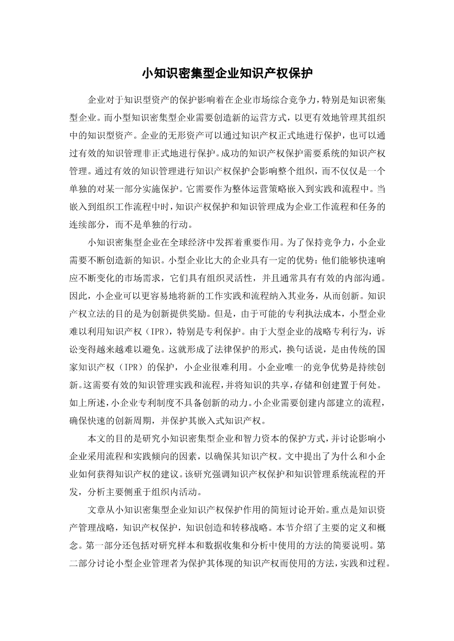Intellectual Property Protection in Small Knowledge Intensive Enterprises