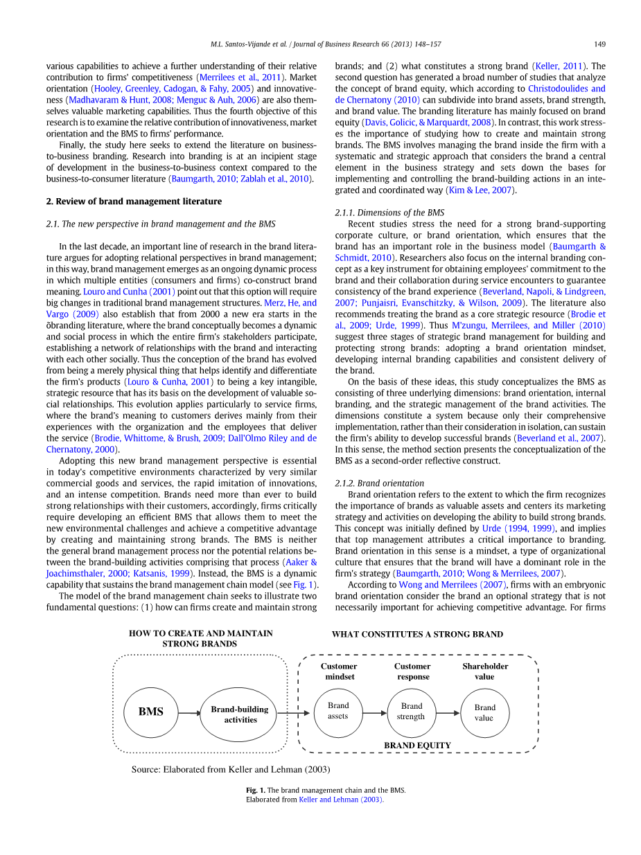品牌管理链说明两个基本问题:(1)企业如何创建和保持强大的品牌;(2)一个强大的品牌的构成要素(凯勒,2011)。第二个问题产生了大量关于分析品牌资产概念的研究,根据Christodoulides和de Chernatony(2010),品牌资产可以细分为品牌资产、品牌实力和品牌价值。品牌研究主要关注品牌资产(Davis, Golicic, amp; Marquardt, 2008)。相反,这项研究强调了如何创建和保持强大的品牌的重要性。BMS涉及到以一种系统的战略方法管理公司内部的品牌,该方法将品牌视为商业战略的核心要素,并为整合和协调的方式实施和控制品牌建设行动奠定基础(Kim amp; Lee, 2007)。