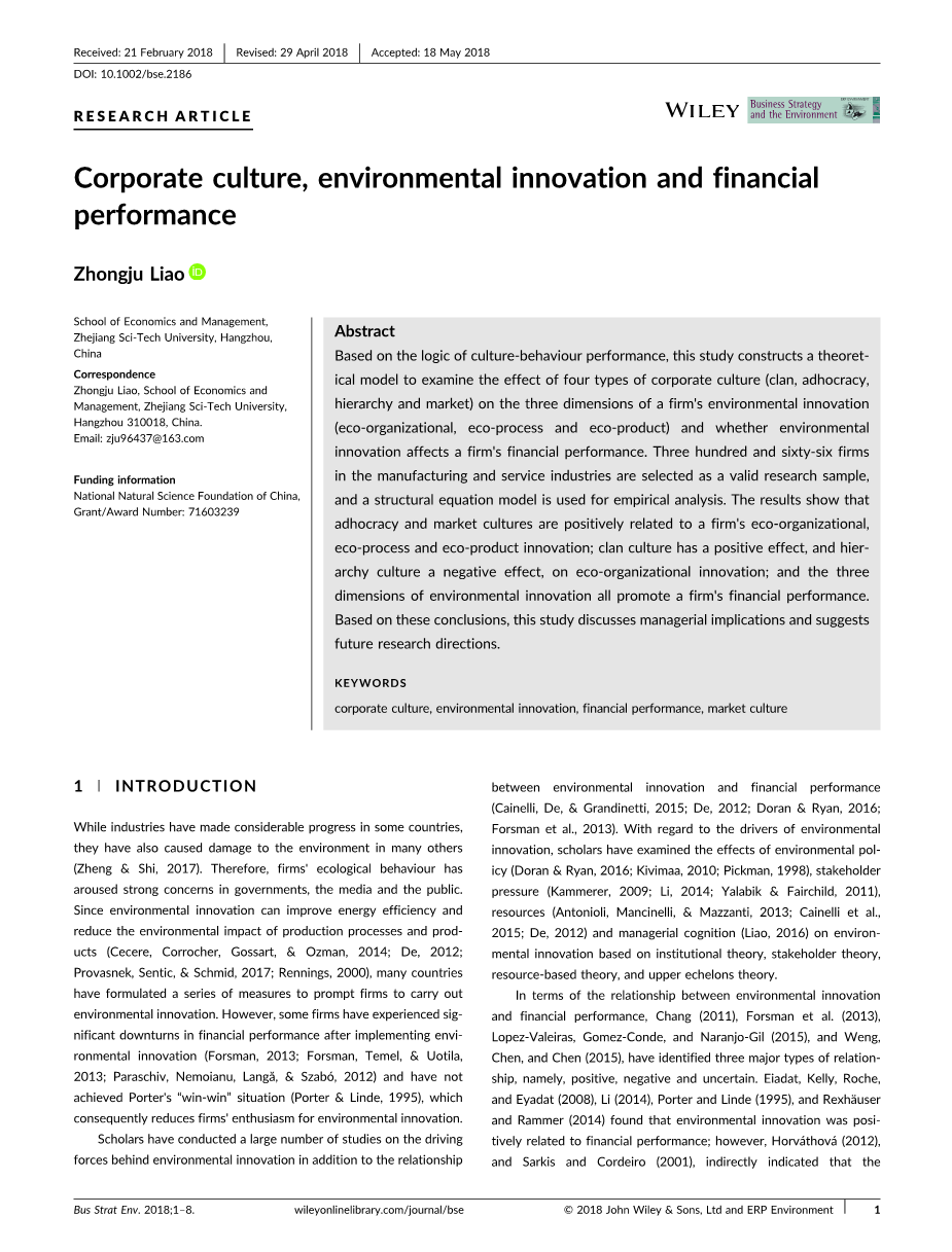 企业文化、环境创新与财务绩效外文翻译资料