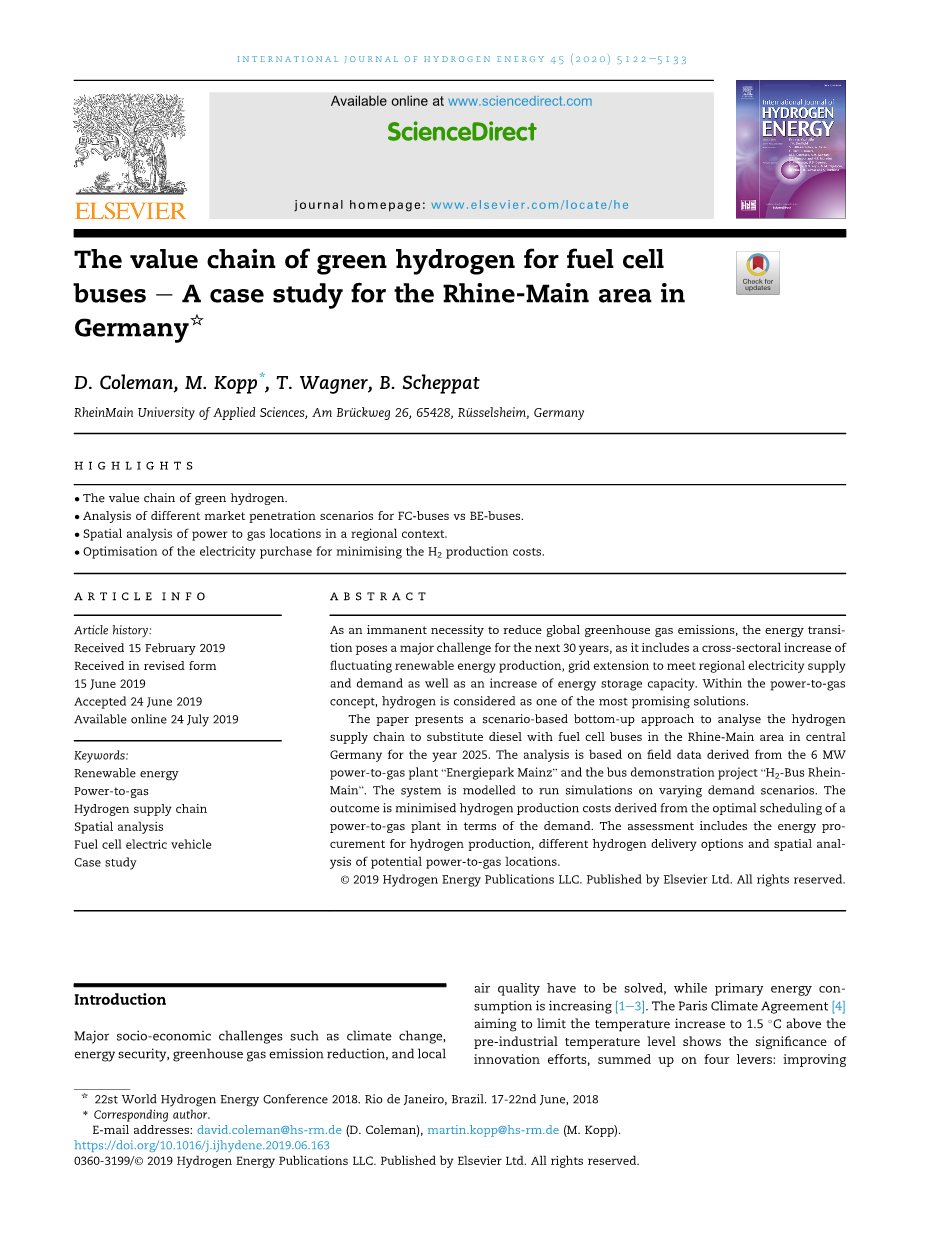 燃料电池客车绿色氢的价值链——以德国莱茵河主城区为例