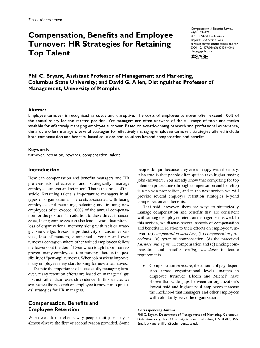 2. Allen, D. G., Bryant, P. C., amp; Vardaman, J. M. (2010). Retaining talent: Replacing misconceptions with evidencebased strategies. Academy of Management Perspectives, 24, 48-64.