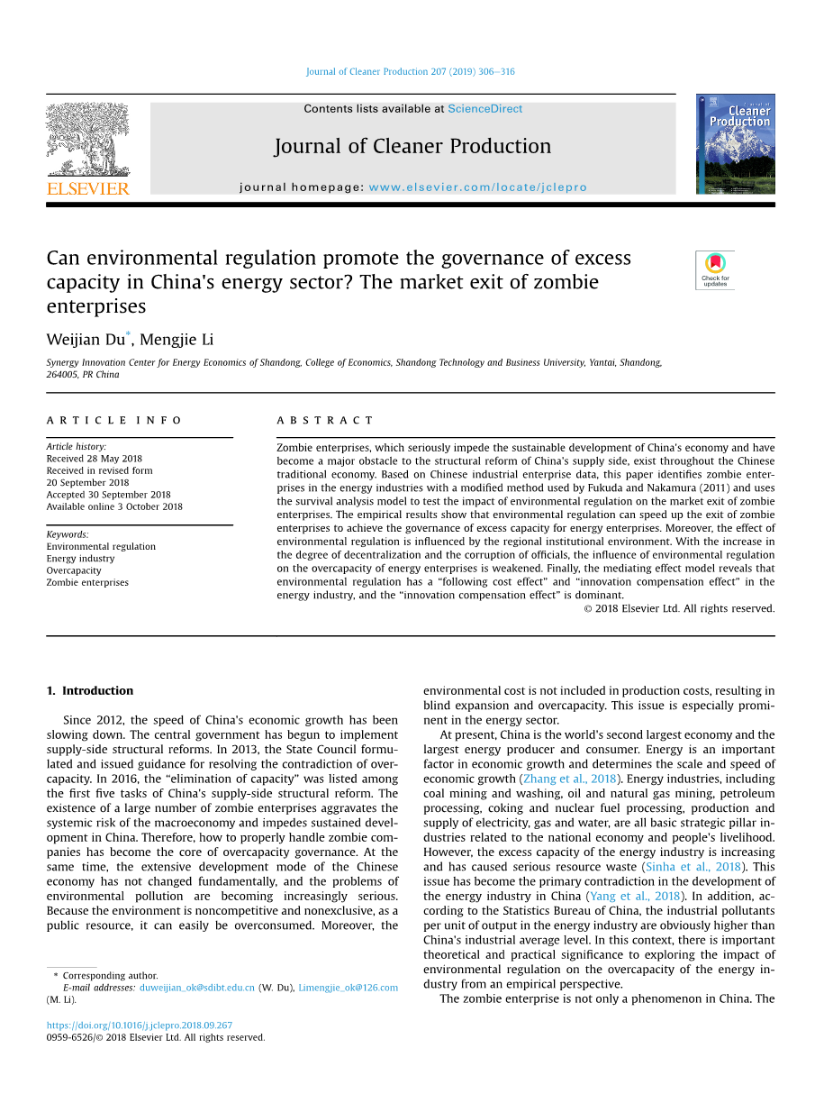 In addition, in view of the estimated deviation between the regional environmental regulation index and the enterprise data matching process, the enterprise-level emission fee collection in-dex is selected as the environmental regulation index to verify the robustness of the model conclusion, and the regression results are shown in model 2 of Table 3. The results show that the collection of corporate sewage charges can accelerate the exit of zombie enter-prises and have a positive impact on the governance of excess ca-pacity in the energy industry.