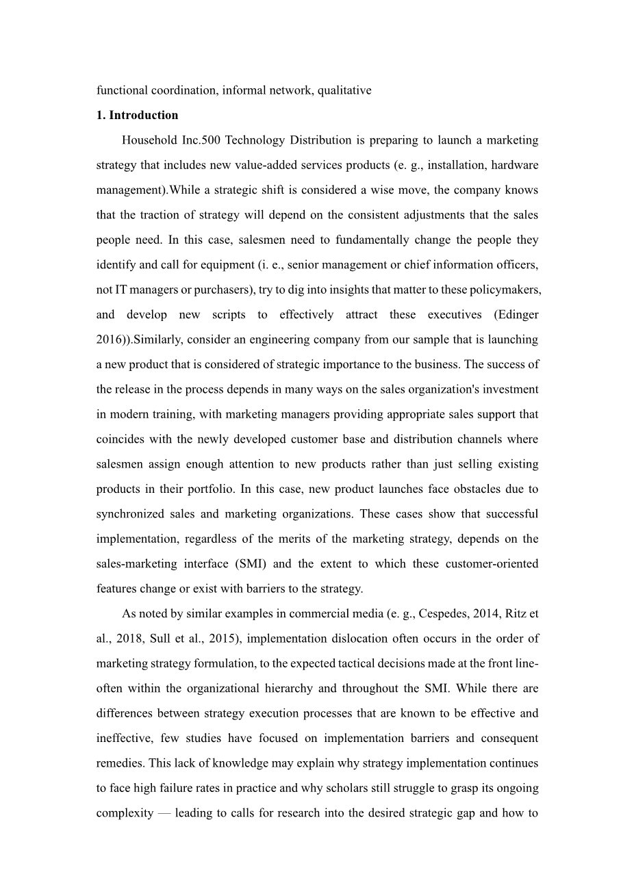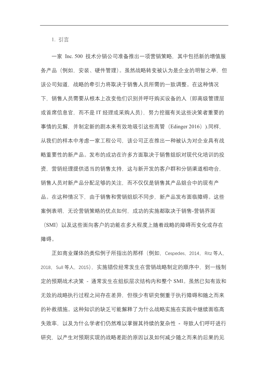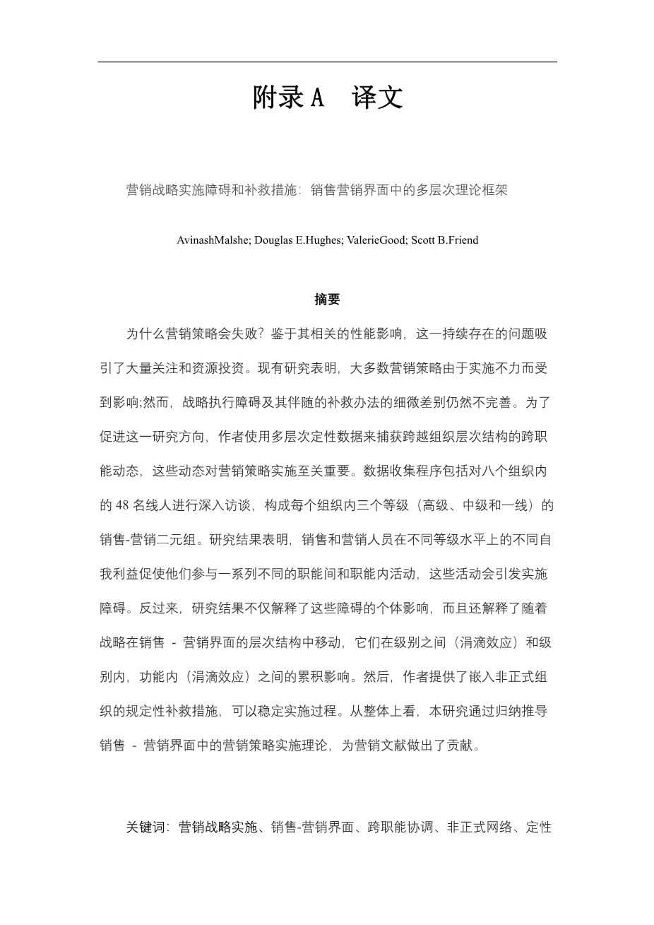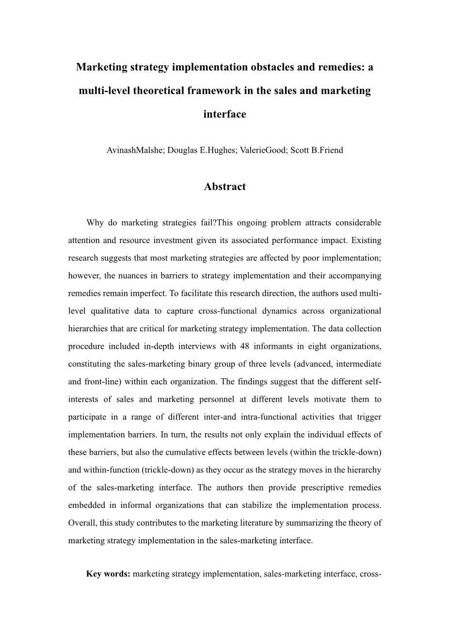 营销战略实施障碍和补救措施:销售营销界面中的多层次理论框架外文翻译资料