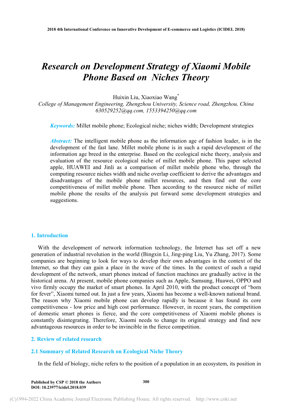 基于利基理论的小米手机发展战略研究外文翻译资料