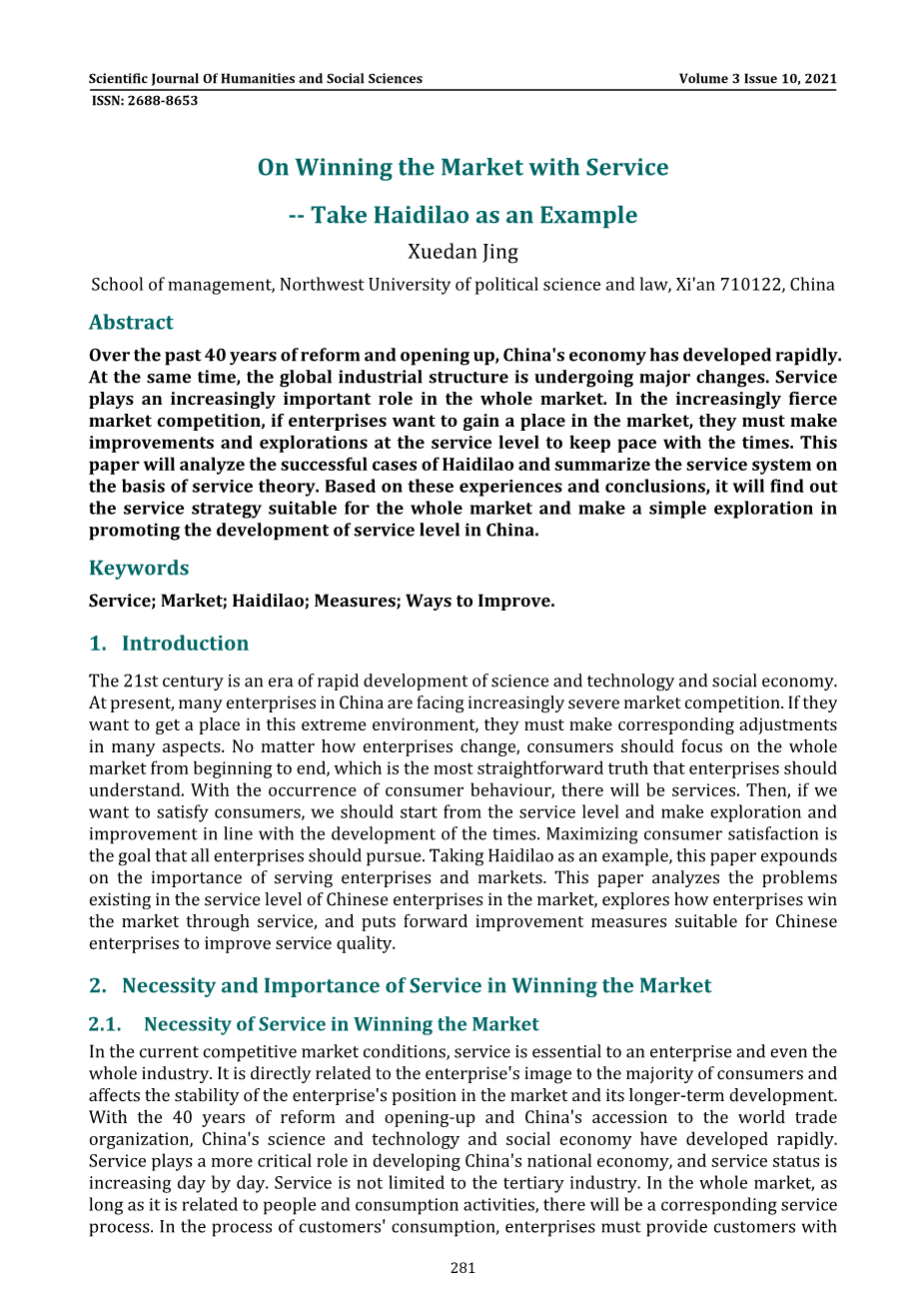 21世纪是科技和社会经济快速发展的时代。目前,我国许多企业正面临着日益激烈的市场竞争。如果他们想要在这种极端的环境中占有一席之地,他们必须在很多方面做出相应的调整。无论企业如何变化,消费者都应该从头到尾关注整个市场,这是企业应该理解的最直接的事实。随着消费者行为的发生,就会有服务。那么,要想让消费者满意,就要从服务层面出发,顺应时代的发展进行探索和改进。最大限度地提高消费者满意度是所有企业应该追求的目标。本文以海底捞为例,阐述了服务企业和市场的重要性。本文分析了中国企业在市场上存在的服务水平问题,探讨了企业如何通过服务赢得市场,并提出了适合中国企业提高服务质量的改进措施。