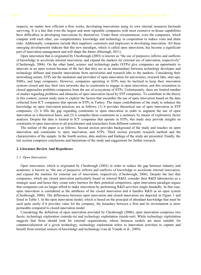 由切萨布鲁夫2003年提出的开放式创新被称为“利用有目的的知识流入和流出来加速内部创新,并分别扩大外部使用创新的市场”。另一方面,科技园区使公司有机会在开放系统中进行创新,因为它们作为技术开发者和技术扩散者之间的中介,并将大学和研究实验室的创新转移到市场。考虑到它们的网络性质,STP是大学,研究实验室,初创企业,中小企业和大型公司的开放式创新的调解者和提供者。然而,由于受制于开放式创新的限制,在STP中运营的公司可能倾向于保持其创新系统关闭并保持其自己的网络,并且这种封闭式方法的方向禁止公司使用STP的生态系统。不幸的是,关于STP公司面临的开放创新的问题和障碍的研究数量有限。为了在这方面对理论做出贡献,目前的研究旨在基于从土耳其STP运营的ICT公司收集的数据探讨阻碍开放式创新使用的因素。研究的主要贡献是提高开放式创新实践的知识:(1)它提供了STP公司开放式创新的理论使用;(2)它弥补了开放创新的约束的空白,以便增加开放式创新作为理论基础的使用,(3)通过探索性因素分析将这些约束编译为摘要。尽管数据仅限于在STP中运营的ICT公司,但本研究可以提供有关从不同背景向所有从业者和研究人员开放创新的限制的见解。