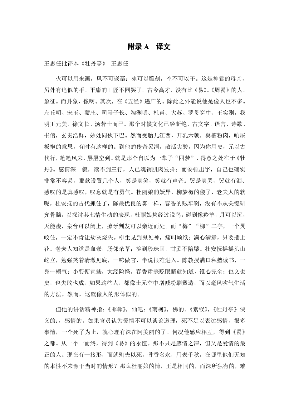 《牡丹亭》杜丽娘形象研究外文翻译资料 2023-07-06 15:11:20 英语原文共 1 页,剩余内容已隐藏,支付完成后下载完整资料 英语译文共 2 页,剩余内容已隐藏,支付完成后下载完整资料 资料编号:[602303],资料为PDF文档或Word文档,PDF文档可免费转换为Word 原文和译文剩余内容已隐藏,您需要先支付 30元 才能查看原文和译文全部内容!立即支付 发小红书推广免费获取该资料资格。点击链接进入获取推广文案即可: Ai一键组稿 | 降AI率 | 降重复率 | 论文一键排版 PREVIOUS NEXT 您可能感兴趣的文章 精益管理-精益管理方法在酒店业中的应用外文翻译资料 主题公园外文翻译资料 财务报表的可持续发展和重新概念化外文翻译资料 关于被选择公司的财务分析外文翻译资料 葡萄酒和文化遗产:阿尔托杜罗河葡萄酒产区的经验外文翻译资料 创意经济、文化产业与地方发展外文翻译资料 我国商业银行个人理财业务的战略研究与发展现状外文翻译资料 大学生的信用卡消费外文翻译资料 成功的学前儿童语音意识教学:课堂经验外文翻译资料 剑桥中国文学史外文翻译资料