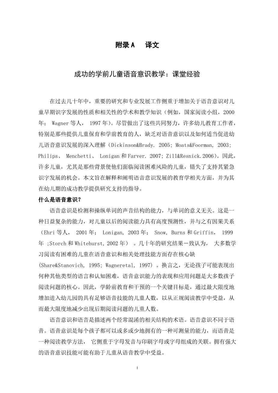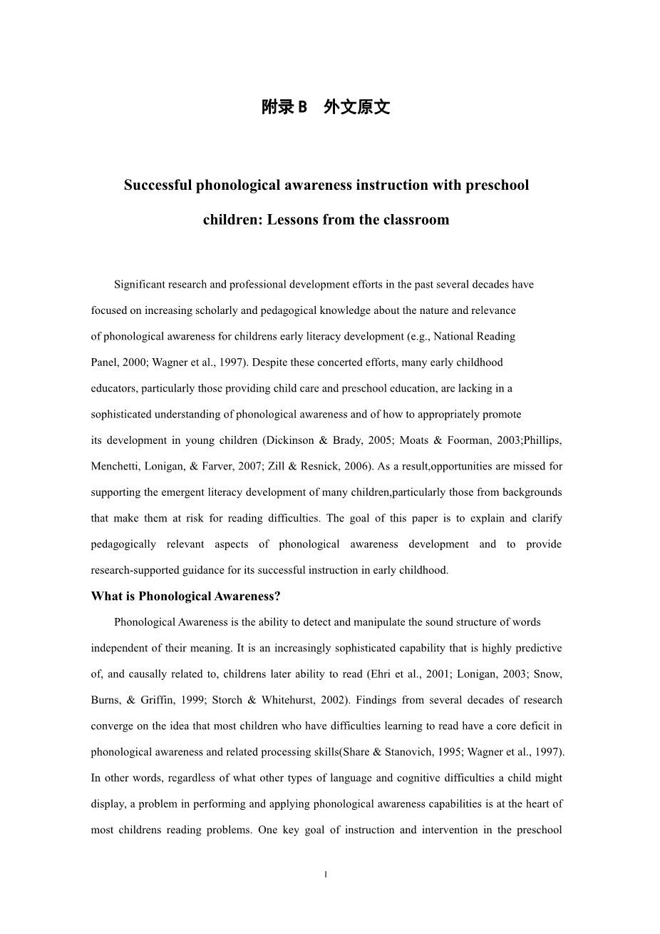 成功的学前儿童语音意识教学:课堂经验外文翻译资料 2023-07-06 15:13:47 英语原文共 23 页,剩余内容已隐藏,支付完成后下载完整资料 英语译文共 18 页,剩余内容已隐藏,支付完成后下载完整资料 资料编号:[602252],资料为PDF文档或Word文档,PDF文档可免费转换为Word 原文和译文剩余内容已隐藏,您需要先支付 30元 才能查看原文和译文全部内容!立即支付 发小红书推广免费获取该资料资格。点击链接进入获取推广文案即可: Ai一键组稿 | 降AI率 | 降重复率 | 论文一键排版 PREVIOUS NEXT 您可能感兴趣的文章 精益管理-精益管理方法在酒店业中的应用外文翻译资料 主题公园外文翻译资料 财务报表的可持续发展和重新概念化外文翻译资料 关于被选择公司的财务分析外文翻译资料 葡萄酒和文化遗产:阿尔托杜罗河葡萄酒产区的经验外文翻译资料 创意经济、文化产业与地方发展外文翻译资料 我国商业银行个人理财业务的战略研究与发展现状外文翻译资料 大学生的信用卡消费外文翻译资料 成功的学前儿童语音意识教学:课堂经验外文翻译资料 剑桥中国文学史外文翻译资料