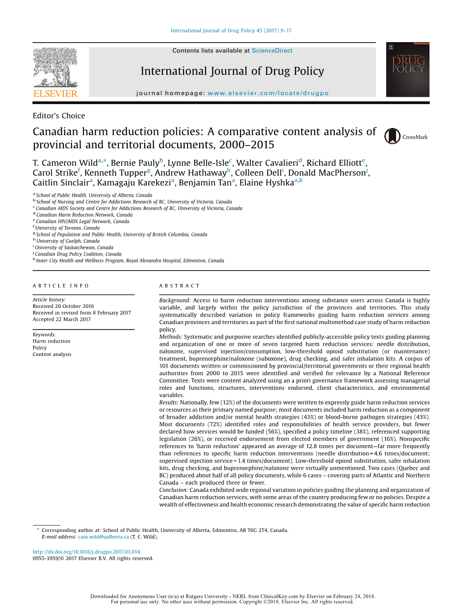 检索到的文档由CS、GK和LBI审查相关性,即文本引用到减少危害的政策、服务和/或资源。通过文档检索过程和对相关文档的初始阅读,迭代地制定了以下包含和排除标准。Ritter和Berends(2016),我们包括文档的定义减少危害政策文本文档(1)签发,和代表,省级或领土政府,或(2)发行的,和代表,一个地区,省级或领土的健康权威,(3)规定未来的行动,(4)解决减少危害服务和干预hellip;hellip;