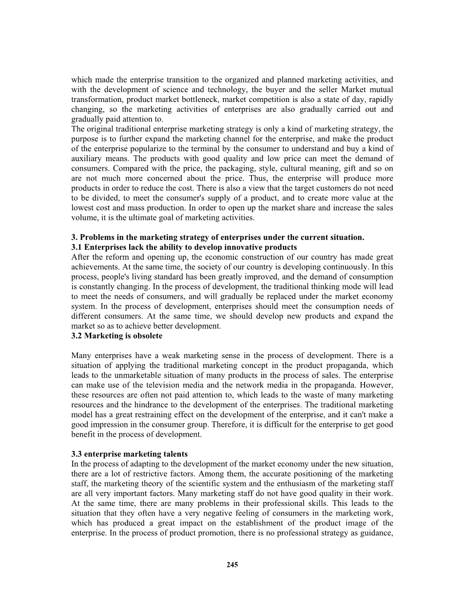 许多企业在发展过程中存在着营销意识薄弱的问题,在产品宣传中仍然运用传统的营销理念,导致许多产品在销售过程中出现滞销的情况。企业可以运用电视媒体和互联网媒体进行宣传,然而,这些宣传渠道往往得不到重视,导致了许多营销资源的浪费,阻碍了企业的发展。传统的营销模式对企业的发展有很大的抑制作用,不能在消费者群体中留下良好的印象。因此,企业在发展过程中很难获得良好的效益。