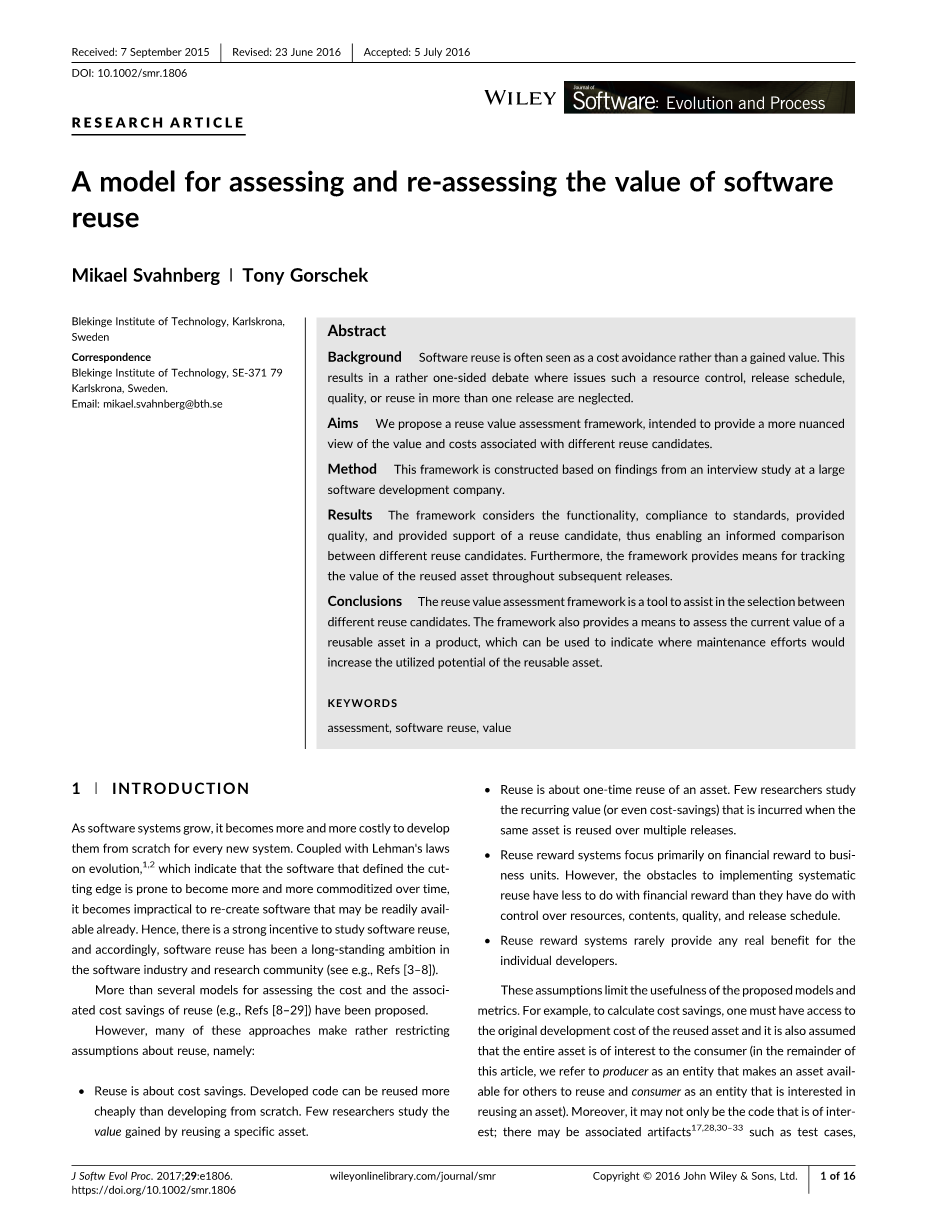 公司产品系列中的重复使用发生在各个层面,并且具有多种类型的资产。例如,用户级功能,中间件组件和基础架构组件都被重用,例如,设计文档,体系结构,源代码组件和测试框架。不断进行的工作是系统地检测和利用重用机会。但是,仍然存在一些挑战,本文中提出的资产价值模型试图解决或至少指出这些挑战。