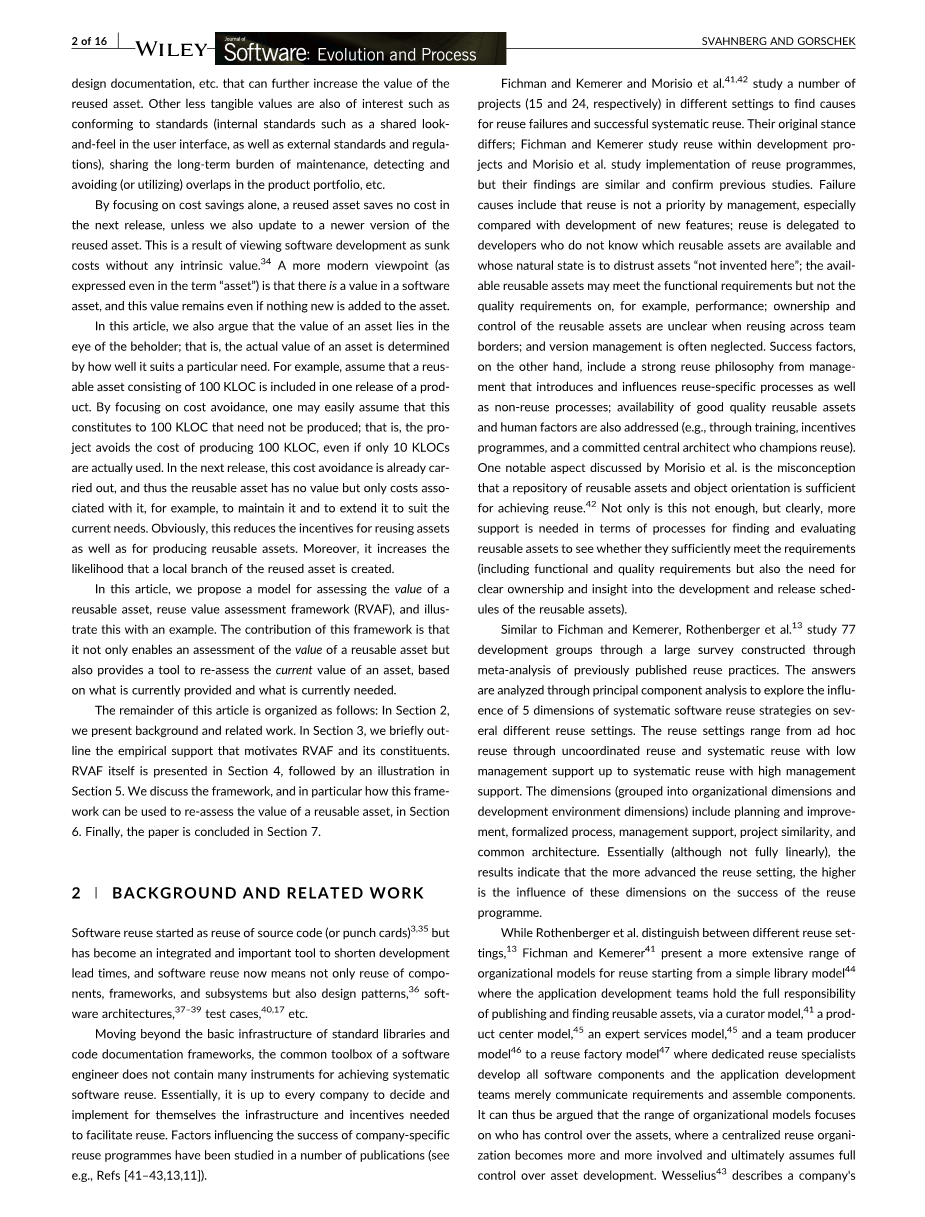 本文的其余部分安排如下:在第2节中,我们介绍了背景和相关工作。在第3节中,我们简要概述了激励RVAF及其成员的实证支持。RVAF本身在第4节中介绍,然后在第5节中进行说明。我们将在第6节讨论该框架,特别是如何使用该框架重新评估可重用资产的价值。最后,该论文在第7节中得出结论。