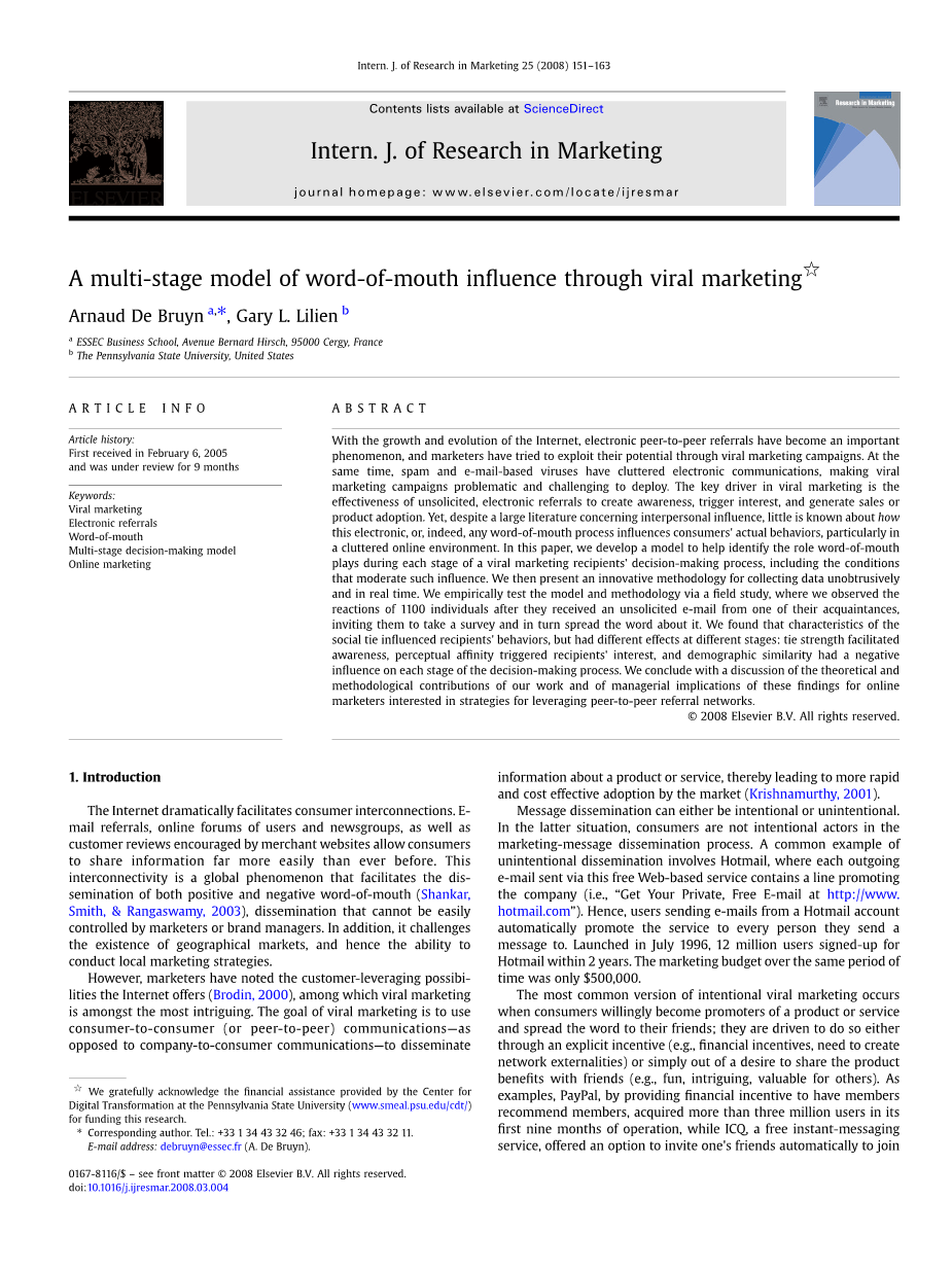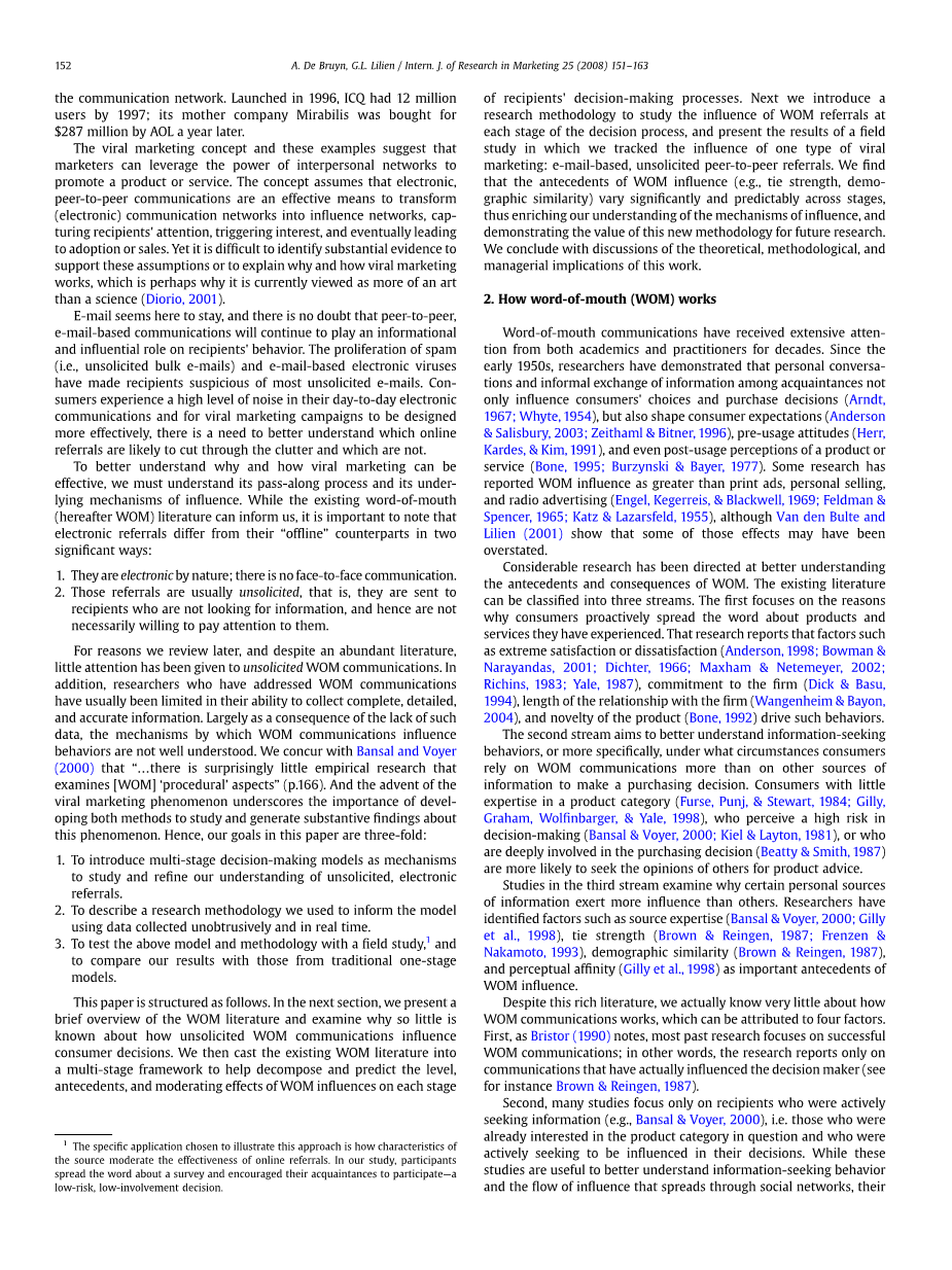 152 A. De Bruyn, G.L. Lilien / Intern. J. of Research in Marketing 25 (2008) 151–163