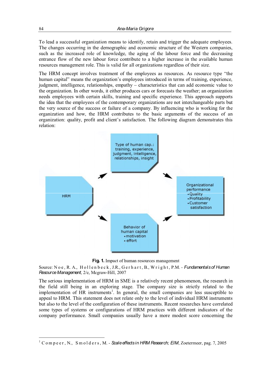 对于小公司的需求和实践(与人力资源有关),很少有人能相对理解。特别是,人力资源实践对小公司的影响还没有得到太多的研究。这个感兴趣的领域是一种“Terra Incognita”9。由于人们注意到,对大公司而言,人力资源管理对业绩的影响是积极的,因此越来越多的作者强调了对中小企业进行类似研究的必要性。现有的研究集中在管理者对人力资源实践的重要性和/或成功的认知上10。主要结论表明,企业家/管理者认识到人力资源实践对于实现目标的必要性。然而,将理论转化为实践会产生许多问题。许多作者从经验上研究了人力资源管理与绩效的关系。