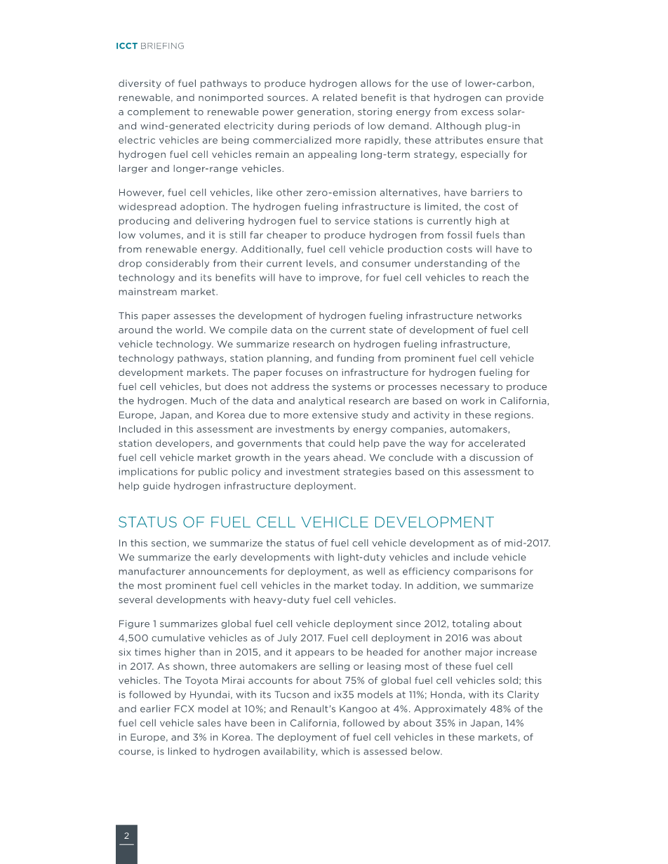 在本节中,我们总结了截至2017年中期燃料电池汽车发展的现状。 我们总结了轻型车辆的早期发展,包括车辆制造商的部署公告,以及比较当今市场上最着名的燃料电池车辆的效率。此外,我们也总结了重型燃料电池汽车的几项发展。