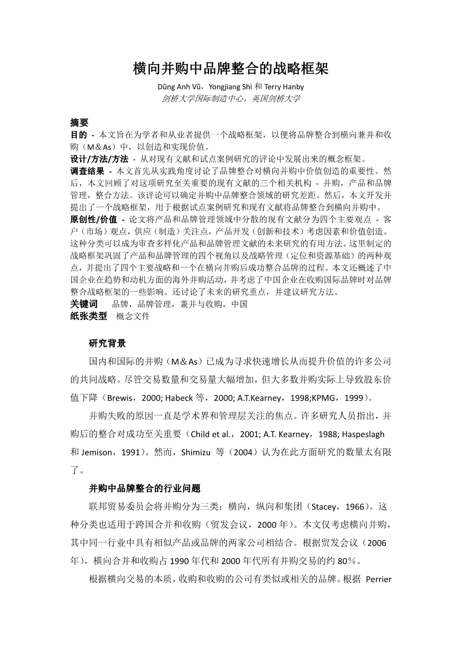 跨国并购的障碍研究——以安踏体育并购亚玛芬为例外文翻译资料 2022-01-25 16:57:29 英语原文共 29 页,剩余内容已隐藏,支付完成后下载完整资料 英语原文共 28 页,剩余内容已隐藏,支付完成后下载完整资料资料编号:[606] 原文和译文剩余内容已隐藏,您需要先支付 30元 才能查看原文和译文全部内容!立即支付 发小红书推广免费获取该资料资格。点击链接进入获取推广文案即可: Ai一键组稿 | 降AI率 | 降重复率 | 论文一键排版 PREVIOUS NEXT 您可能感兴趣的文章 精益管理-精益管理方法在酒店业中的应用外文翻译资料 主题公园外文翻译资料 财务报表的可持续发展和重新概念化外文翻译资料 关于被选择公司的财务分析外文翻译资料 葡萄酒和文化遗产:阿尔托杜罗河葡萄酒产区的经验外文翻译资料 创意经济、文化产业与地方发展外文翻译资料 我国商业银行个人理财业务的战略研究与发展现状外文翻译资料 大学生的信用卡消费外文翻译资料 成功的学前儿童语音意识教学:课堂经验外文翻译资料 剑桥中国文学史外文翻译资料