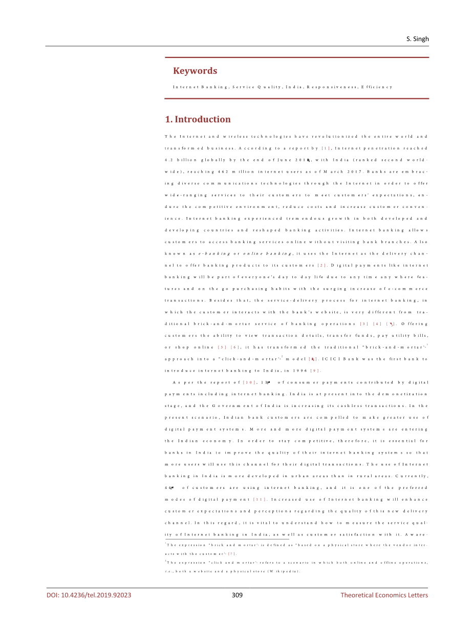 互联网和无线技术彻底改变了整个世界,同时也改变了业务。根据[1]的报告,到2018年6月底,全球互联网普及率达到42亿,其中印度(排名世界第二),截至2017年3月,互联网用户达到4.62亿。为了给客户提供广泛的服务,银行通过互联网采用各种通信技术,以满足客户的期望,承受竞争环境,降低成本并增加客户便利性。互联网银行在发达国家和发展中国家都有了巨大的增长,并重塑了银行业务。网上银行允许客户在线访问银行服务而无需访问银行分行。它也被称为电子银行或网上银行,它使用互联网作为交付渠道向其客户提供银行产品[2]。随着电子商务交易的激增,由于随时随地的特点和不断的购买习惯,像网上银行这样的数字支付将成为每个人日常生活的一部分。此外,网上银行的服务交付过程,即客户与银行网站的交互,与传统的银行业务的实体服务[3][4][5]有很大的不同。它为客户提供了查看交易细节、转账、支付水电费或在线购物的功能[3][6],将传统的实体店模式转变为点击实体店模式[8]。ICICI银行是1996年第一家向印度引入网上银行的银行[9]。