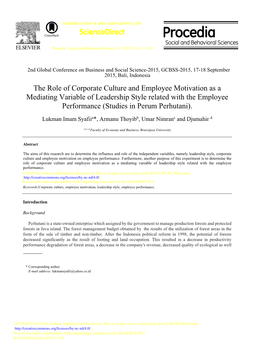 企业文化和员工激励作为与员工绩效相关的领导风格中介变量的作用(佩鲁姆佩尔胡塔尼研究)