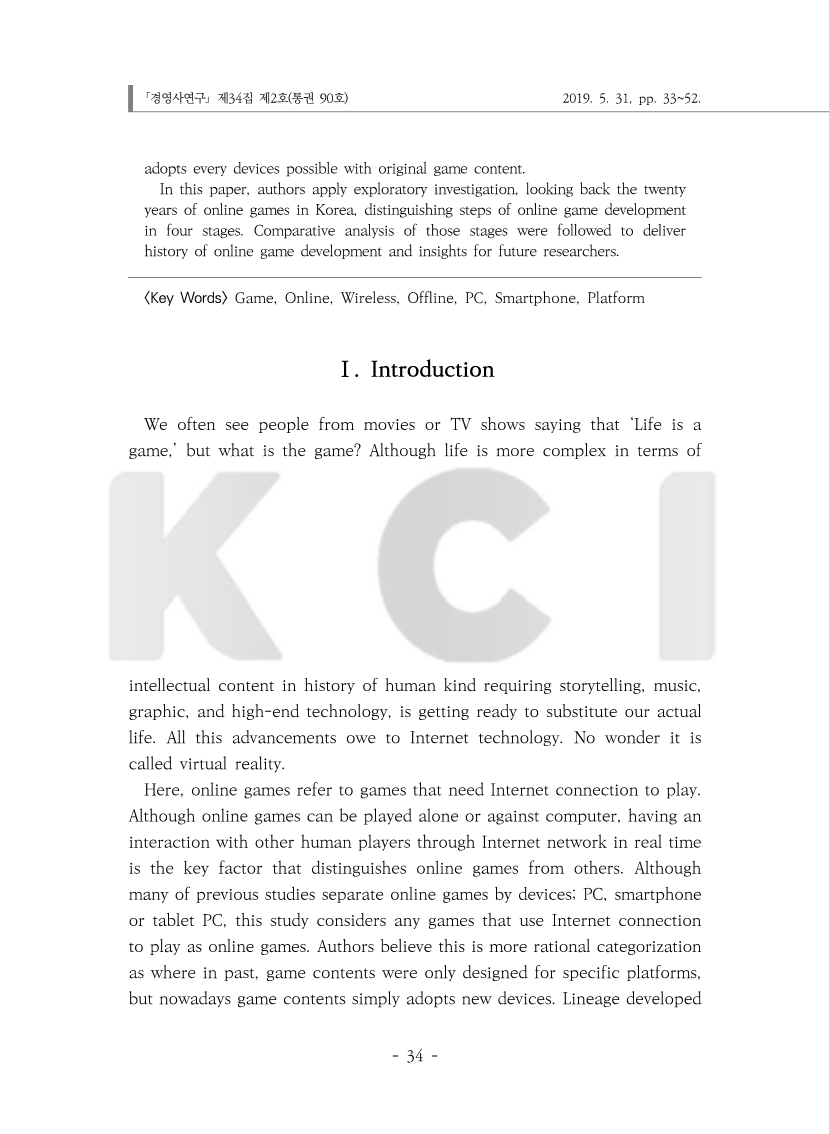 在这里,在线游戏是指需要互联网连接来玩的游戏。虽然网络游戏可以单独播放或针对计算机进行,但通过互联网实时与其他玩家互动是区分网络游戏与其他游戏的关键因素。虽然许多以前的研究通过设备分离了在线游戏;电脑,智能手机或平板电脑,这项研究考虑任何使用Internet连接作为在线游戏的游戏。作者认为,这是更合理的分类,因为在过去,游戏内容只为特定的平台设计,但现在的游戏内容只是采用新的设备。以NCsoft为例沿袭发展,在电脑软件包游戏中提供了用户可以在离线条件下玩,但也通过电脑,智能手机和平板电脑在线状态,连接成千上万的玩家同时玩。互联网技术的发展使我们能够与世界各地的人们互动,网络游戏是数字内容的中心,它构成了我们新的生活方式。本文将结合影响韩国游戏产业的环境因素,探讨网络游戏的起步历史。