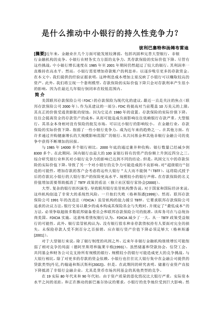 Subject:    What Drives the Persistent Competitiveness of Small Bank?