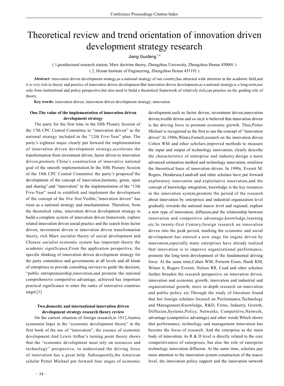 江苏省与广东省实施创新驱动发展战略的比较研究外文翻译资料 2022-03-27 19:37:03 英语原文共 4 页,剩余内容已隐藏,支付完成后下载完整资料 英语译文共 6 页,剩余内容已隐藏,支付完成后下载完整资料资料编号:[483980],资料为PDF文档或Word文档,PDF文档可免费转换为Word 原文和译文剩余内容已隐藏,您需要先支付 30元 才能查看原文和译文全部内容!立即支付 发小红书推广免费获取该资料资格。点击链接进入获取推广文案即可: Ai一键组稿 | 降AI率 | 降重复率 | 论文一键排版 PREVIOUS NEXT 您可能感兴趣的文章 精益管理-精益管理方法在酒店业中的应用外文翻译资料 主题公园外文翻译资料 财务报表的可持续发展和重新概念化外文翻译资料 关于被选择公司的财务分析外文翻译资料 葡萄酒和文化遗产:阿尔托杜罗河葡萄酒产区的经验外文翻译资料 创意经济、文化产业与地方发展外文翻译资料 我国商业银行个人理财业务的战略研究与发展现状外文翻译资料 大学生的信用卡消费外文翻译资料 成功的学前儿童语音意识教学:课堂经验外文翻译资料 剑桥中国文学史外文翻译资料