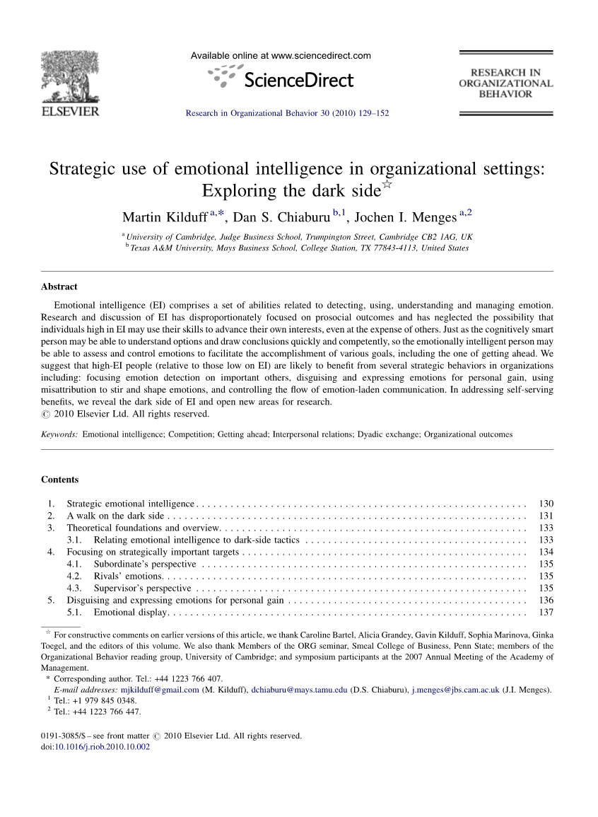 Martin Kilduff a,*, Dan S. Chiaburu b,1, Jochen I. Menges a,2