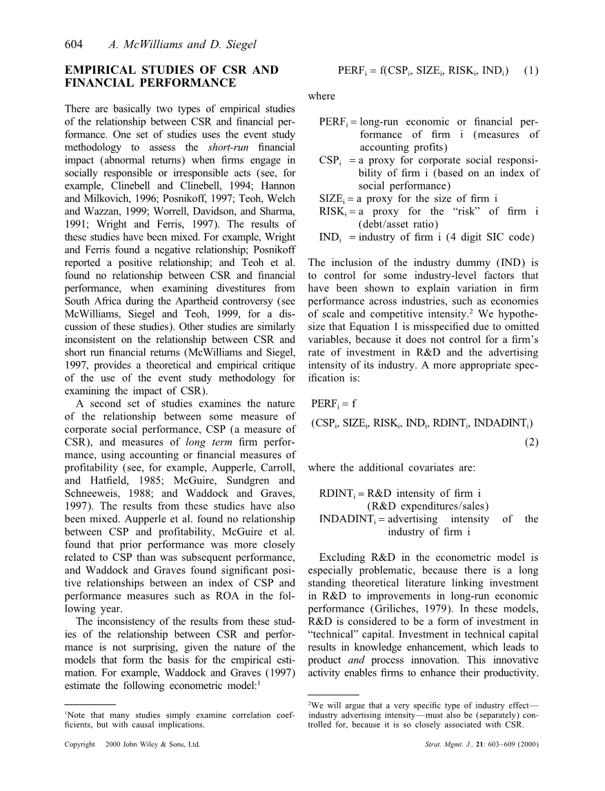 PERFi=f(CSPi,SIZEi,RISKi,INDi,RDINTi,INDADINTi) (2)