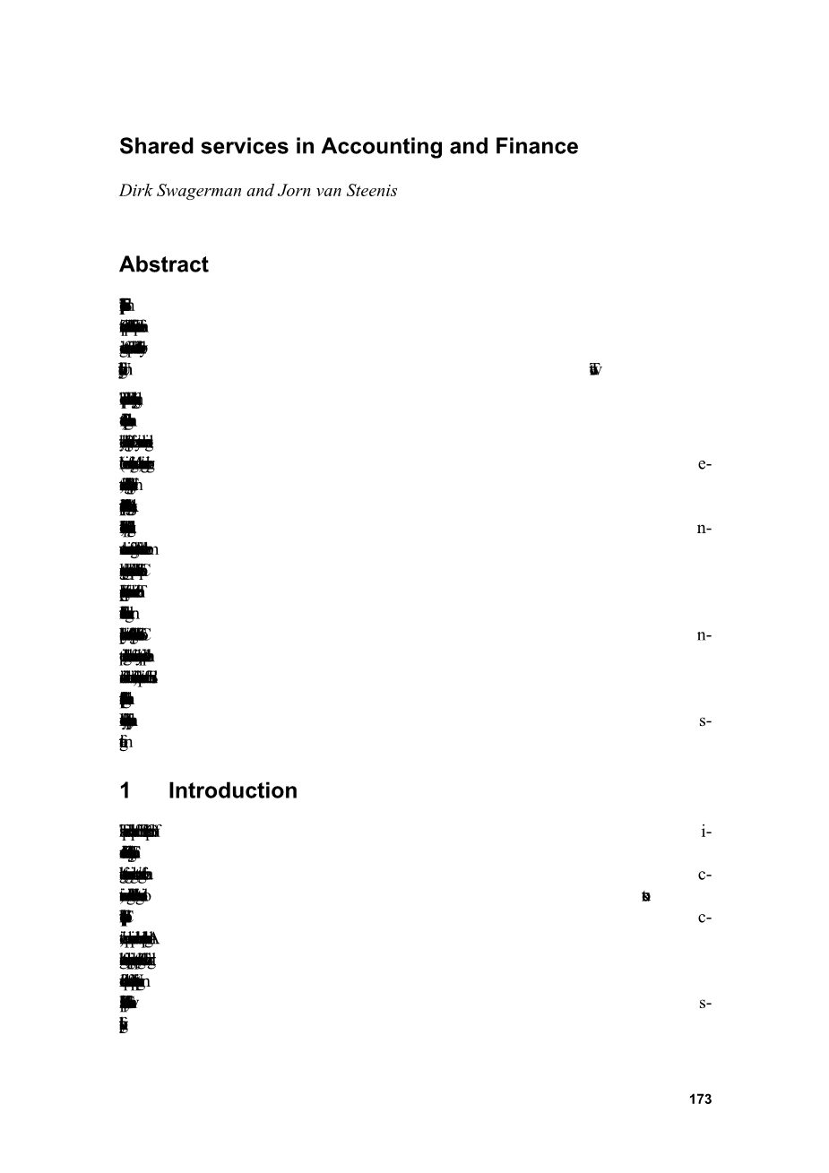 本文的目的是介绍应用于财务功能的共享服务概念(即财务共享服务中心)的当前状态。这篇论文是在Twente大学的信息和通信技术支持下出现的。