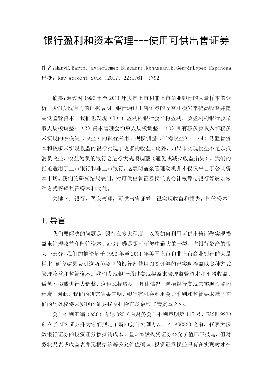 商业银行盈余管理研究外文翻译资料 2022-07-05 20:44:04 英语原文共 32 页,剩余内容已隐藏,支付完成后下载完整资料 英语原文共 23 页,剩余内容已隐藏,支付完成后下载完整资料资料编号:[10324],资料为PDF文档或Word文档,PDF文档可免费转换为Word 原文和译文剩余内容已隐藏,您需要先支付 30元 才能查看原文和译文全部内容!立即支付 发小红书推广免费获取该资料资格。点击链接进入获取推广文案即可: Ai一键组稿 | 降AI率 | 降重复率 | 论文一键排版 PREVIOUS NEXT 您可能感兴趣的文章 预算创新、信息质量和部门绩效外文翻译资料 印度信息技术行业财务分析 ——以威普罗和印孚瑟斯公司为例外文翻译资料 真实性与公司治理外文翻译资料 财产责任保险公司投资组合选择的决定因素外文翻译资料 失衡:中国财政联邦制的意外结果外文翻译资料 财务弹性是影响亚洲企业投资效率的因素之一外文翻译资料 风险管理在审计中的地位及其重要性外文翻译资料 杠杆和公司绩效:机构环境是否重要?外文翻译资料 印度尼西亚企业社会、环境与财务绩效之间的关系外文翻译资料 为中国纯电动公交行业(PEB) 发展新型商业模式外文翻译资料