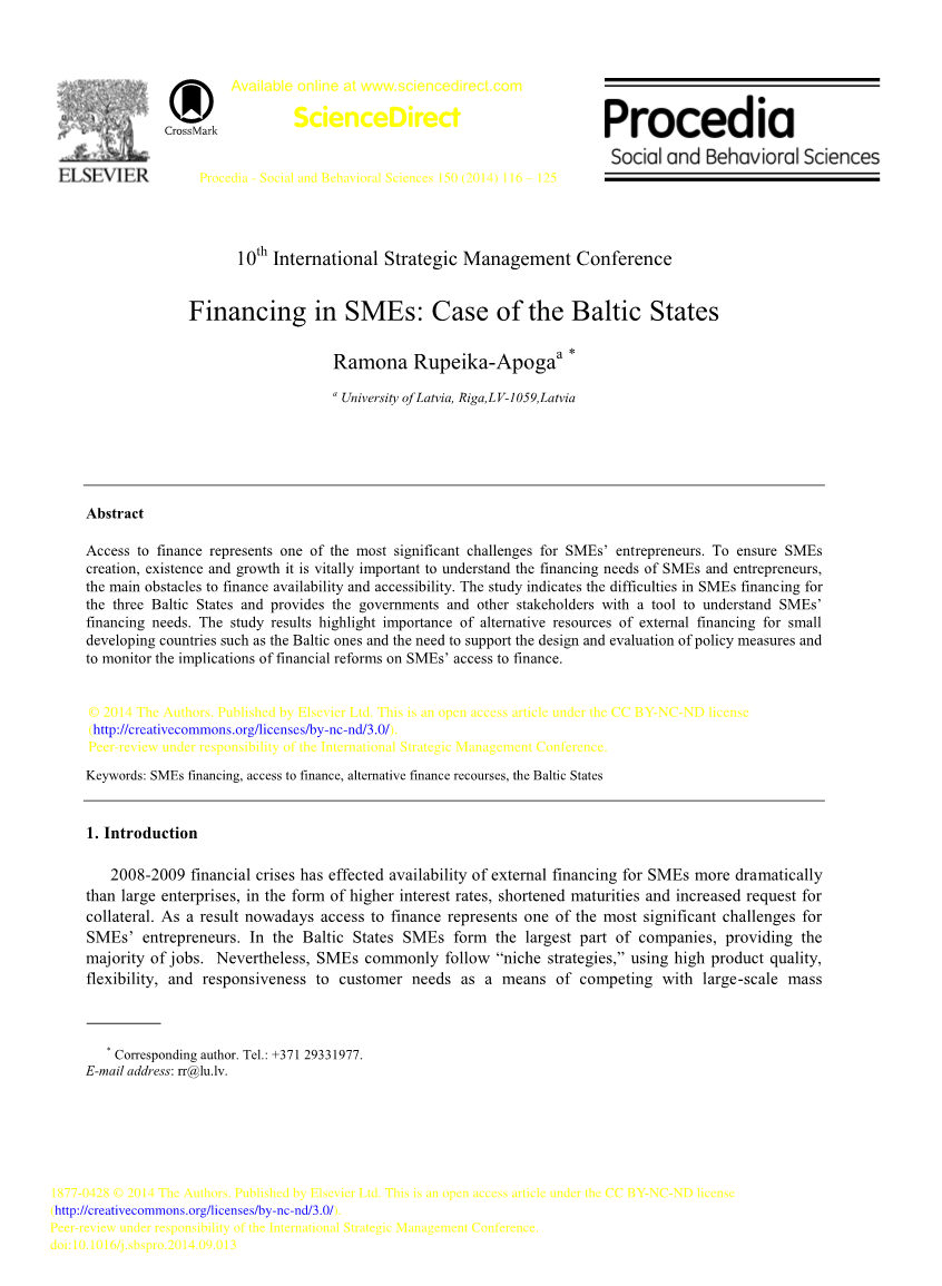 关键词:中小企业融资,融资渠道,替代融资资源,波罗的海国家