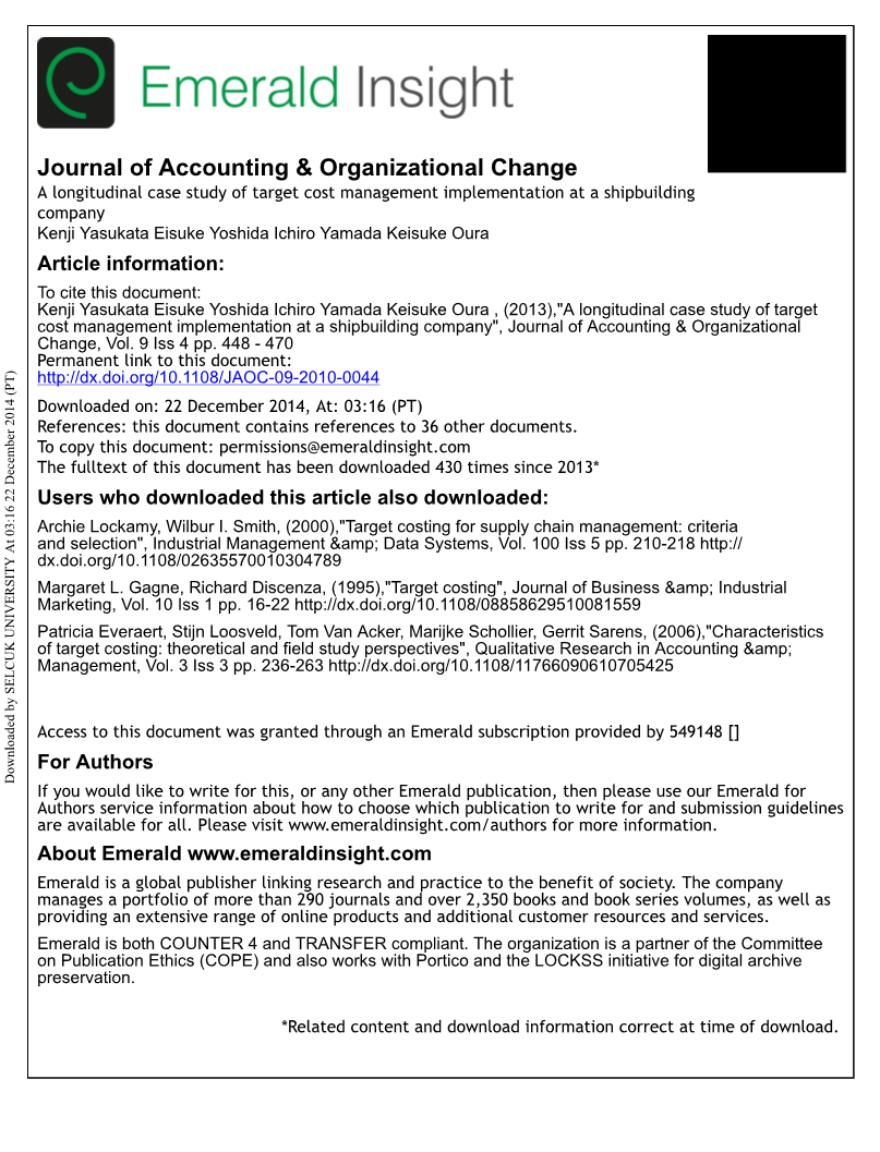 (A longitudinal case study of target cost management implementation at a shipbuilding company部分译文)