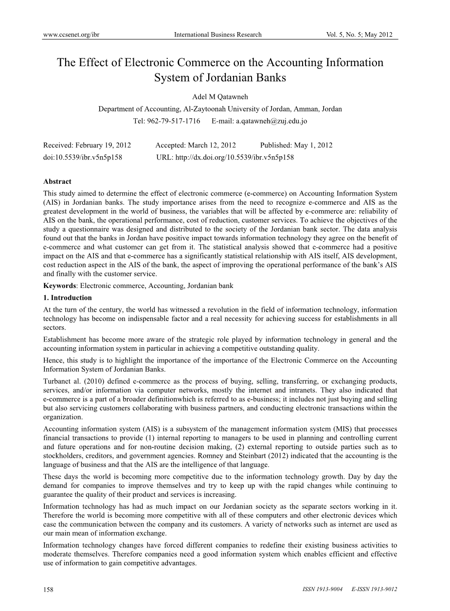 因此,本研究突出了电子商务在约旦银行会计信息系统的重要性。