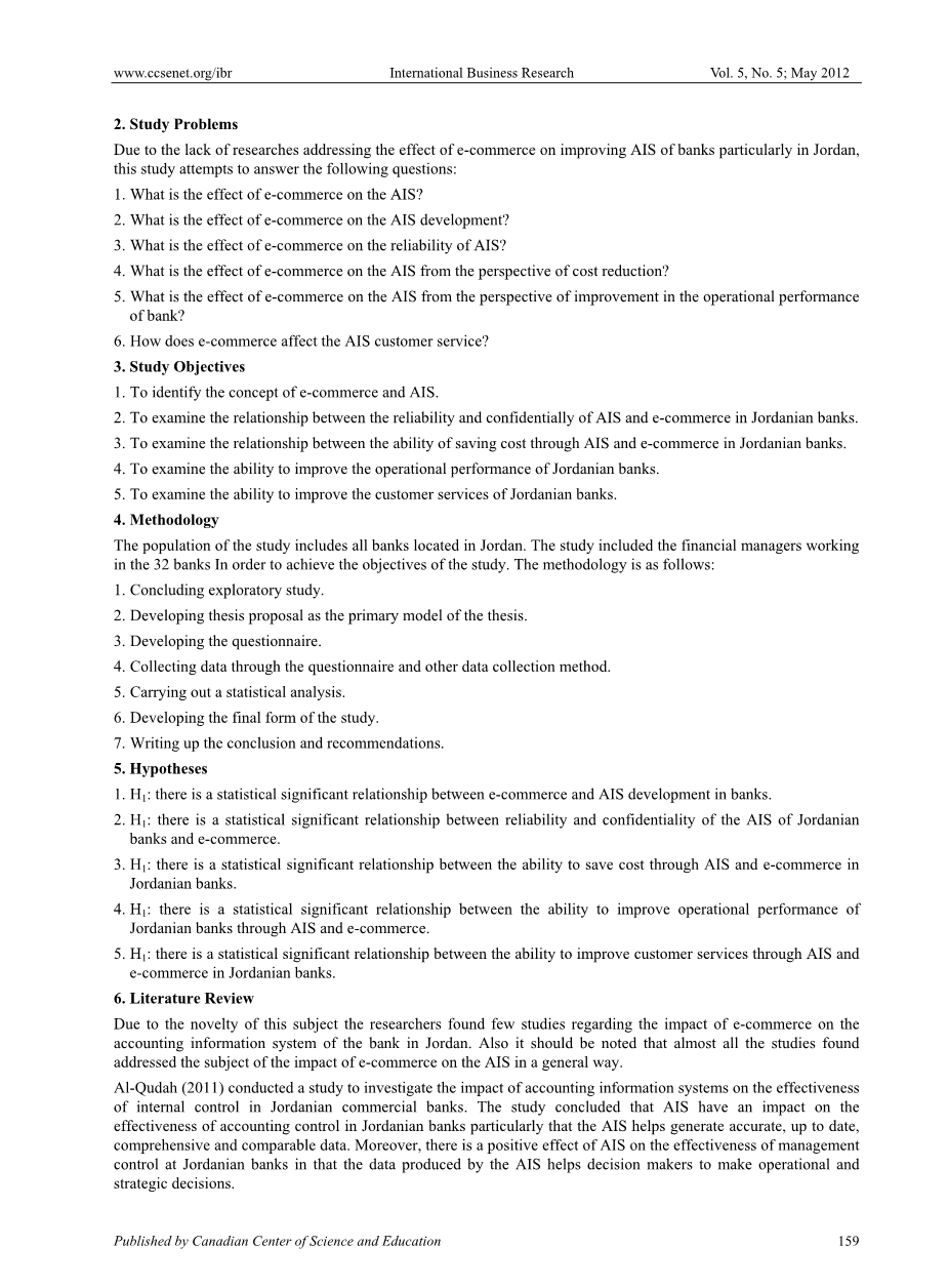 由于这门学科的新颖性,研究人员发现,很少有关于电子商务对约旦银行的会计信息系统的影响的研究。同时还应该注意的是,几乎所有的研究都发现,在一般情况下可以解决电子商务对AIS的影响问题。