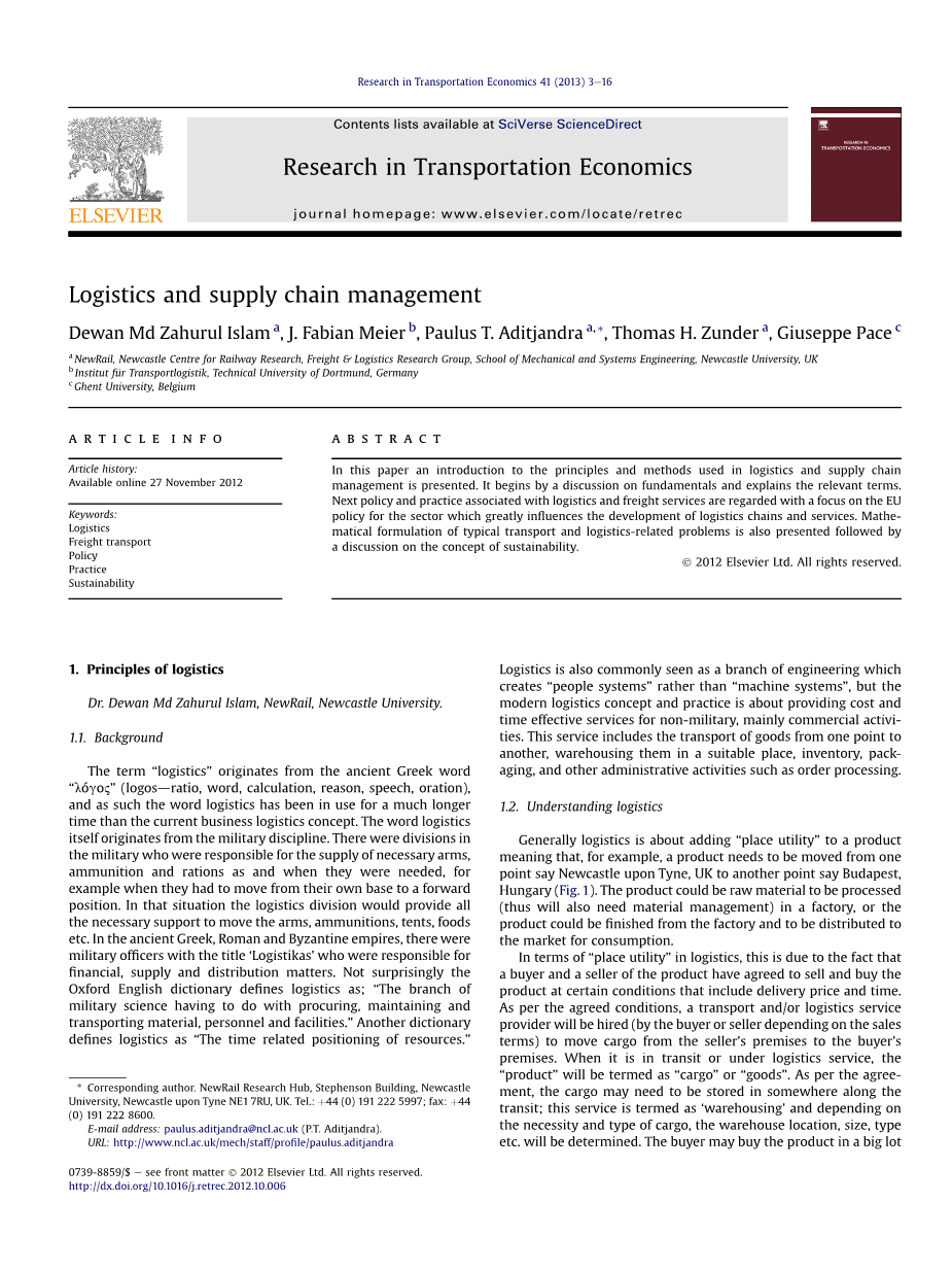 Generally logistics is about adding “place utility” to a product meaning that, for example, a product needs to be moved from one point say Newcastle upon Tyne, UK to another point say Budapest, Hungary (Fig. 1). The product could be raw material to be processed (thus will also need material management) in a factory, or the product could be finished from the factory and to be distributed to the market for consumption.