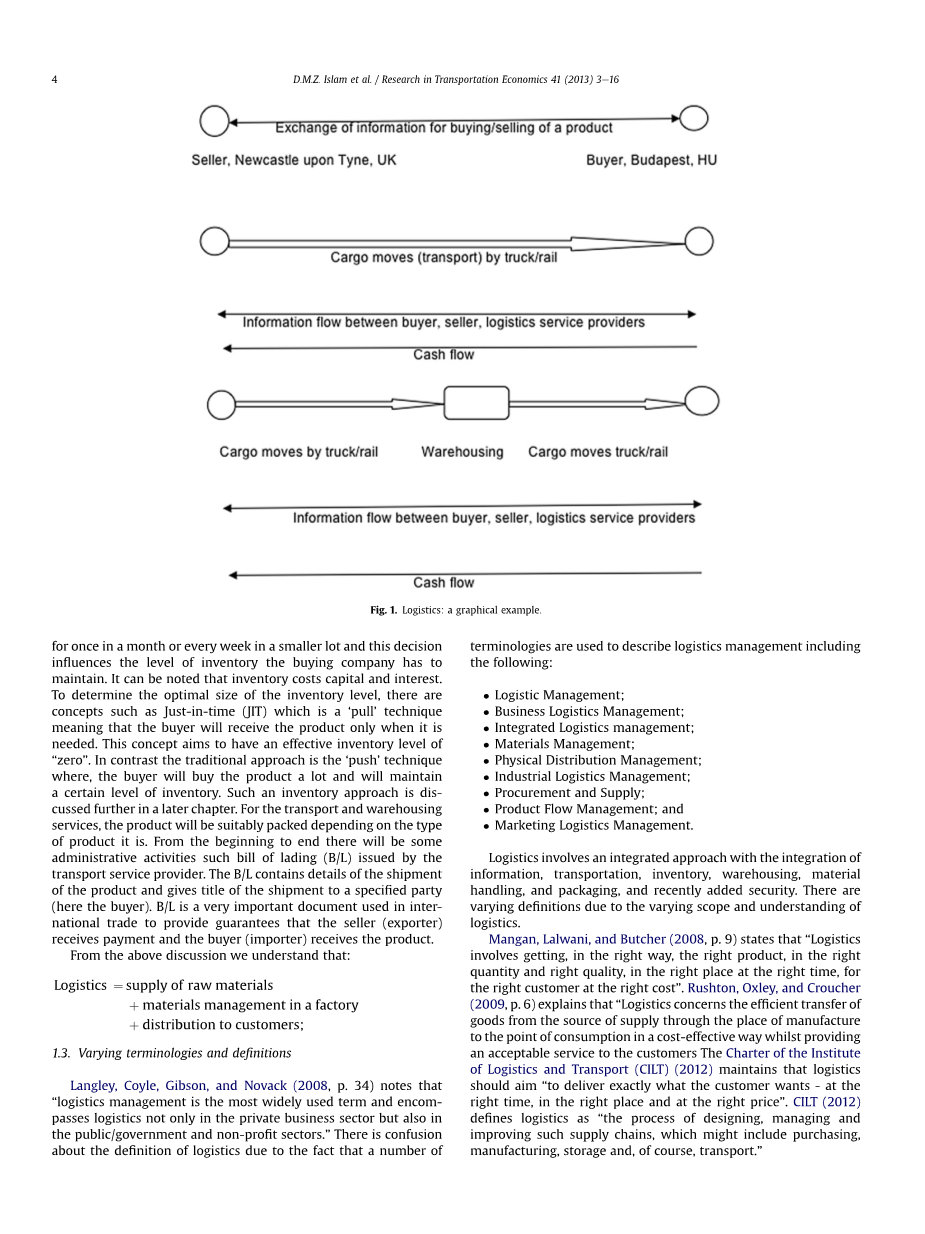 The term “logistics” originates from the ancient Greek word “loacute;go2” (logosdratio, word, calculation, reason, speech, oration), and as such the word logistics has been in use for a much longer time than the current business logistics concept. The word logistics itself originates from the military discipline. There were divisions in the military who were responsible for the supply of necessary arms, ammunition and rations as and when they were needed, for example when they had to move from their own base to a forward position. In that situation the logistics division would provide all the necessary support to move the arms, ammunitions, tents, foods etc. In the ancient Greek, Roman and Byzantine empires, there were military officers with the title lsquo;Logistikasrsquo; who were responsible for financial, supply and distribution matters. Not surprisingly the Oxford English dictionary defines logistics as; “The branch of military science having to do with procuring, maintaining and transporting material, personnel and facilities.” Another dictionary defines logistics as “The time related positioning of resources.” Logistics is also commonly seen as a branch of engineering which creates “people systems” rather than “machine systems”, but the modern logistics concept and practice is about providing cost and time effective services for non-military, mainly commercial activi- ties. This service includes the transport of goods from one point to another, warehousing them in a suitable place, inventory, pack- aging, and other administrative activities such as order processing.