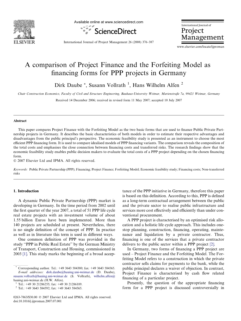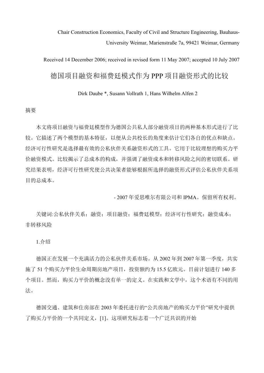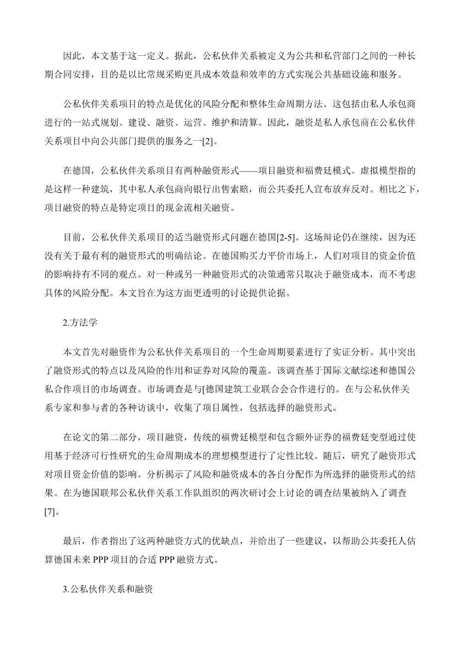 德国项目融资和福费廷模式作为PPP项目融资形式的比较外文翻译资料