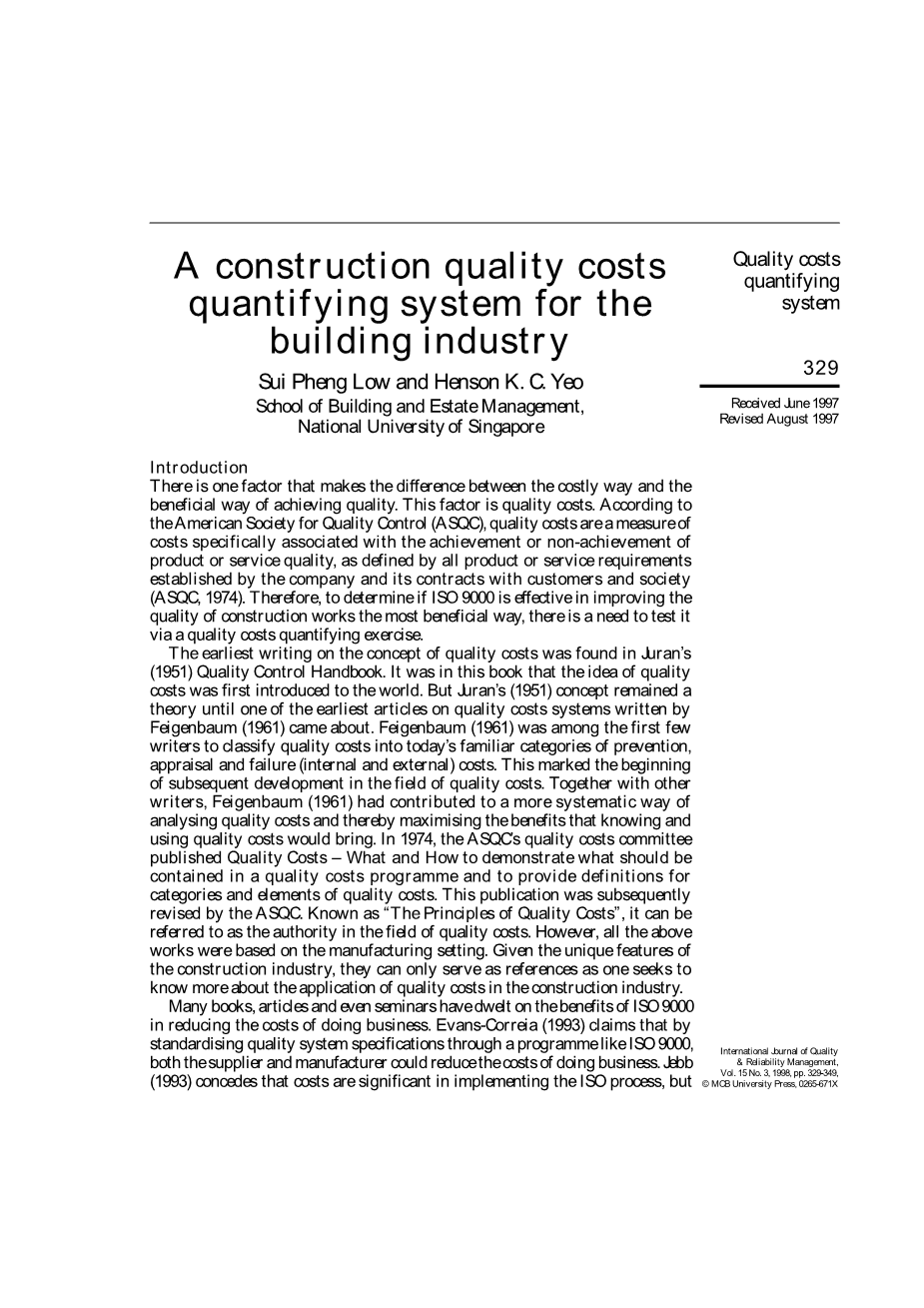 绥芬洛和亨森K.C.Yeo 新加坡国立大学建筑及物业管理学院 1997年6月收到 1997年8月修订