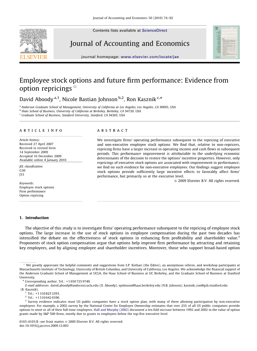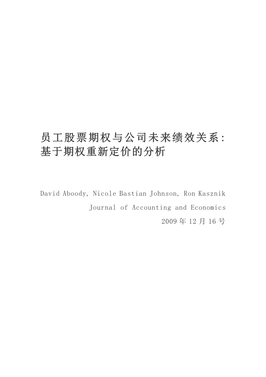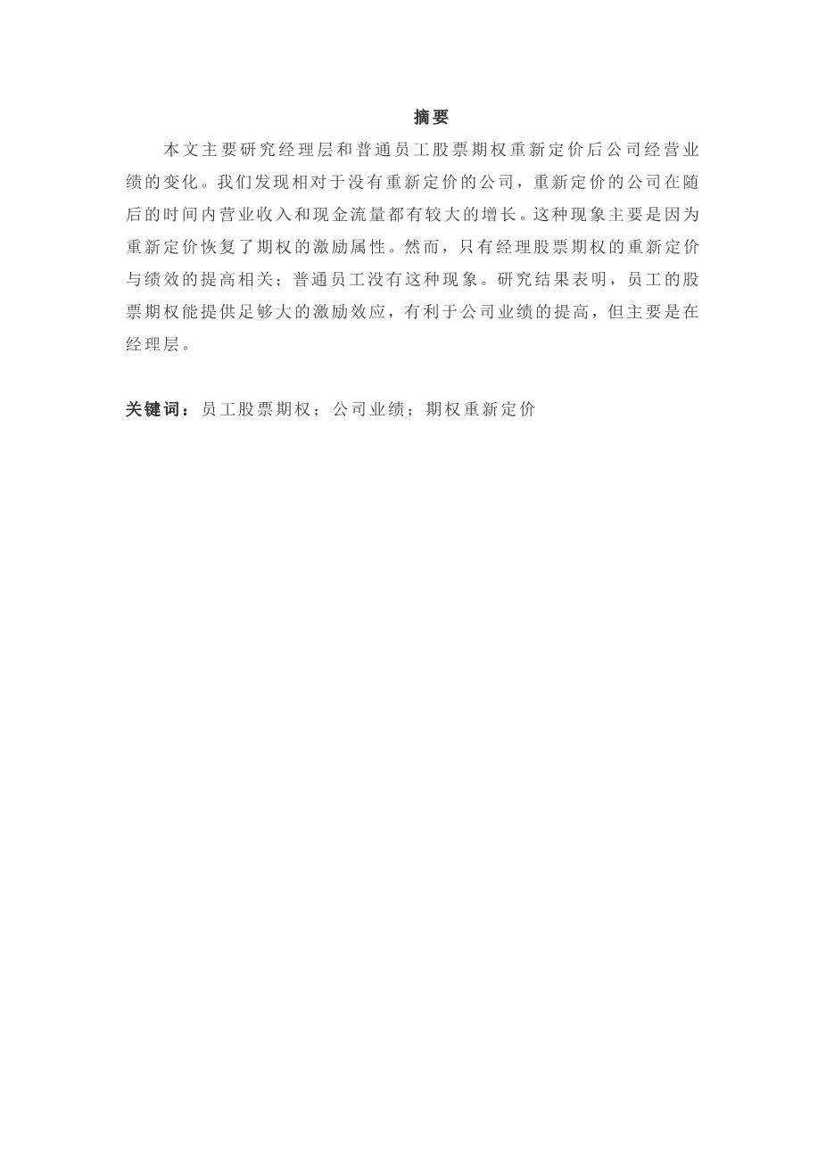 员工股票期权与公司未来绩效关系:基于期权重新定价的分析外文翻译资料