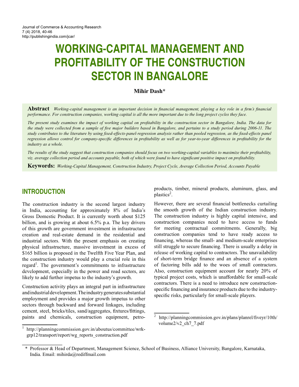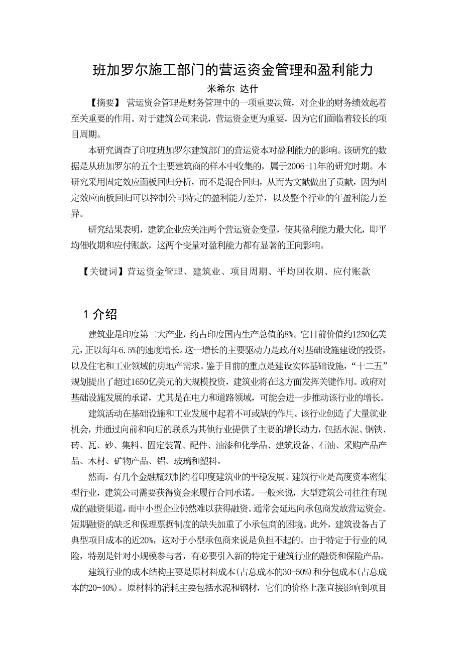 班加罗尔施工部门的营运资金管理和盈利能力外文翻译资料 2022-08-14 14:20:45 英语原文共 8 页,剩余内容已隐藏,支付完成后下载完整资料 英语译文共 10 页,剩余内容已隐藏,支付完成后下载完整资料 资料编号:[235664],资料为PDF文档或Word文档,PDF文档可免费转换为Word 原文和译文剩余内容已隐藏,您需要先支付 30元 才能查看原文和译文全部内容!立即支付 发小红书推广免费获取该资料资格。点击链接进入获取推广文案即可: Ai一键组稿 | 降AI率 | 降重复率 | 论文一键排版 PREVIOUS NEXT 您可能感兴趣的文章 预算创新、信息质量和部门绩效外文翻译资料 印度信息技术行业财务分析 ——以威普罗和印孚瑟斯公司为例外文翻译资料 真实性与公司治理外文翻译资料 财产责任保险公司投资组合选择的决定因素外文翻译资料 失衡:中国财政联邦制的意外结果外文翻译资料 财务弹性是影响亚洲企业投资效率的因素之一外文翻译资料 风险管理在审计中的地位及其重要性外文翻译资料 杠杆和公司绩效:机构环境是否重要?外文翻译资料 印度尼西亚企业社会、环境与财务绩效之间的关系外文翻译资料 为中国纯电动公交行业(PEB) 发展新型商业模式外文翻译资料