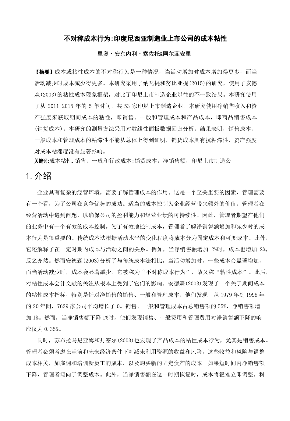 不对称成本行为:印度尼西亚制造业上市公司的成本粘性外文翻译资料 2022-08-14 14:23:22 英语原文共 9 页,剩余内容已隐藏,支付完成后下载完整资料 英语译文共 8 页,剩余内容已隐藏,支付完成后下载完整资料 资料编号:[235654],资料为PDF文档或Word文档,PDF文档可免费转换为Word 原文和译文剩余内容已隐藏,您需要先支付 30元 才能查看原文和译文全部内容!立即支付 发小红书推广免费获取该资料资格。点击链接进入获取推广文案即可: Ai一键组稿 | 降AI率 | 降重复率 | 论文一键排版 PREVIOUS NEXT 您可能感兴趣的文章 预算创新、信息质量和部门绩效外文翻译资料 印度信息技术行业财务分析 ——以威普罗和印孚瑟斯公司为例外文翻译资料 真实性与公司治理外文翻译资料 财产责任保险公司投资组合选择的决定因素外文翻译资料 失衡:中国财政联邦制的意外结果外文翻译资料 财务弹性是影响亚洲企业投资效率的因素之一外文翻译资料 风险管理在审计中的地位及其重要性外文翻译资料 杠杆和公司绩效:机构环境是否重要?外文翻译资料 印度尼西亚企业社会、环境与财务绩效之间的关系外文翻译资料 为中国纯电动公交行业(PEB) 发展新型商业模式外文翻译资料